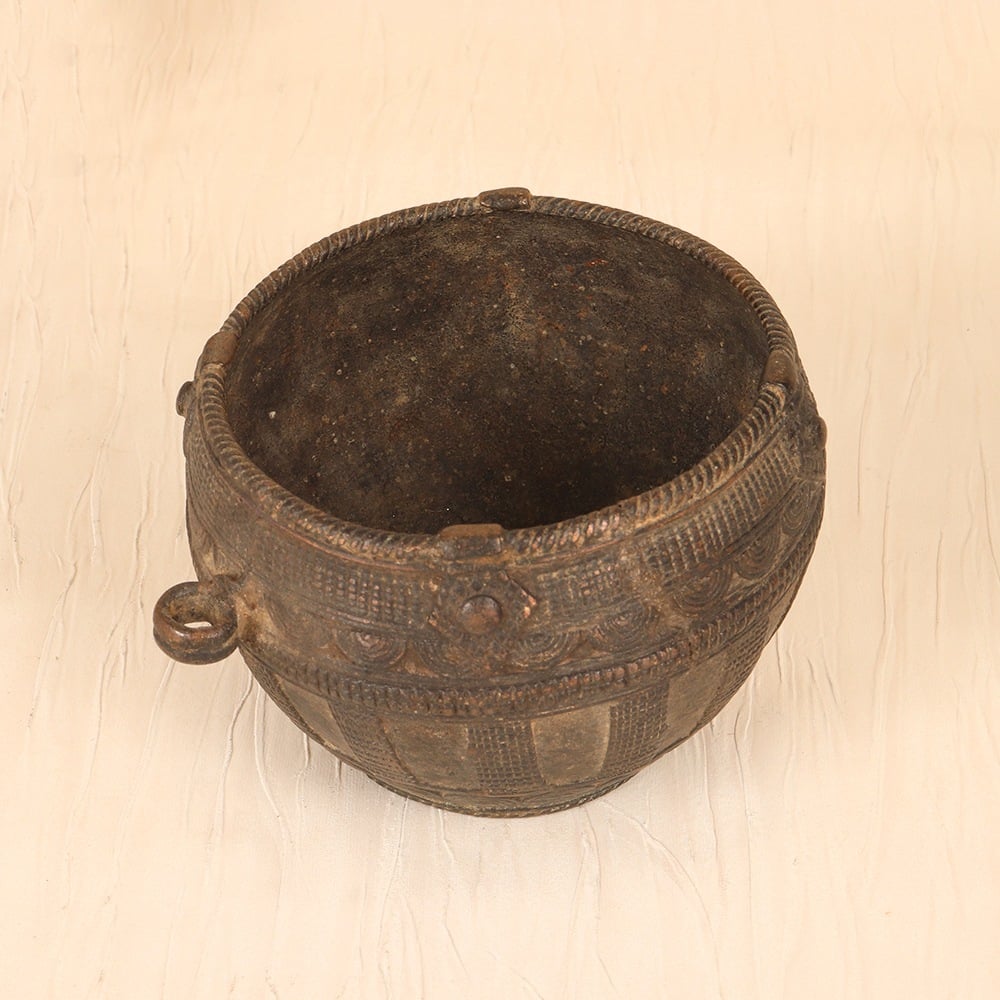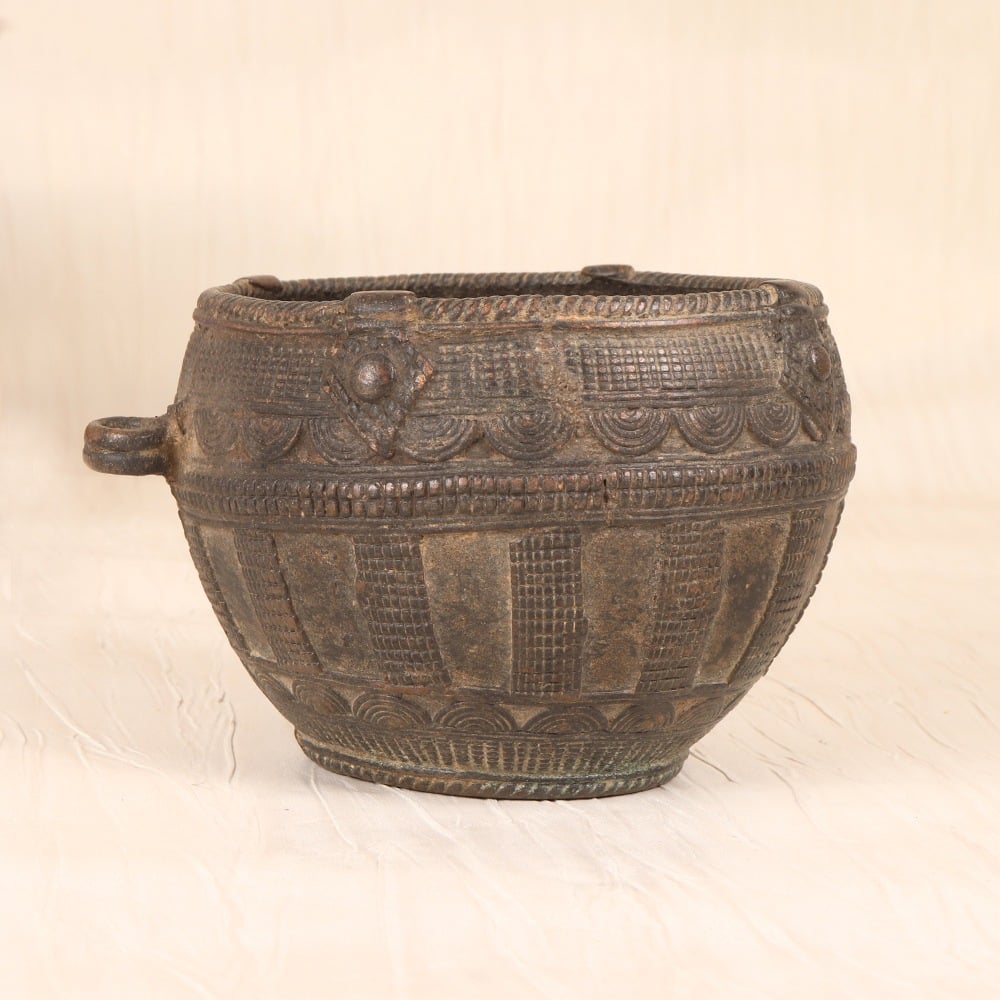 Unlock the secrets of traditional Indian culinary heritage with this stunning vintage brass rice measurement pot from Odisha. Meticulously crafted by skilled artisans, this piece is a testament to the region's rich cultural legacy. This antique brass pot was once an essential tool in Odisha kitchens, used to precisely measure out rice and grains before cooking. Today, it serves as a captivating conversation piece that infuses any space with vintage charm. Display it on your kitchen counter, dining table, or bookshelf to elevate your home's aesthetic and transport guests to a bygone era. Whether you're a collector of Indian artisanal crafts or simply seeking to add a touch of historical elegance to your decor, this vintage brass rice pot is a must-have. Imagine the stories it could tell, the meals it has measured, the generations it has served. Bring home a piece of Odisha's culinary heritage and let it inspire your space with its timeless beauty.