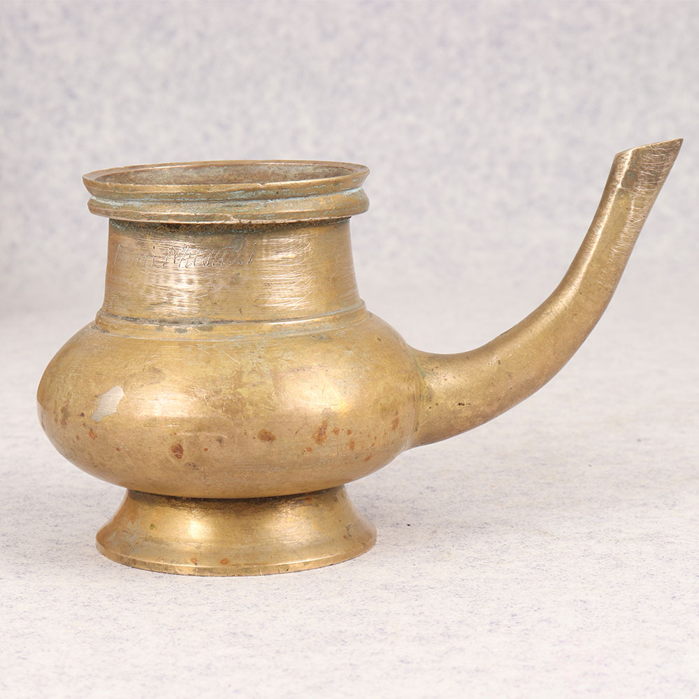 Embrace the timeless allure of spiritual traditions with our Vintage Brass Sagar Water Pot that is a testament to exquisite craftsmanship by professional Indian artisans. This sacred vessel, designed for rituals and prayers in temples, boasts a graceful spout for pouring water during ceremonial worship. Crafted from high-quality brass, its antique brown finish exudes a rich, heritage charm. Handmade with precision and care, this Sagar Water Pot reflects the artisanal mastery passed down through generations. Versatile in its application, it finds a dignified place in your home, office, restaurant, hotel, or cafe prayer room, serving both spiritual and decorative purposes. Elevate your surroundings with its antique elegance, or add it to your vintage collection for a touch of cultural richness. This exceptional piece isn't merely an artefact, it's a meaningful gift for your loved ones on special, festive, or auspicious occasions.