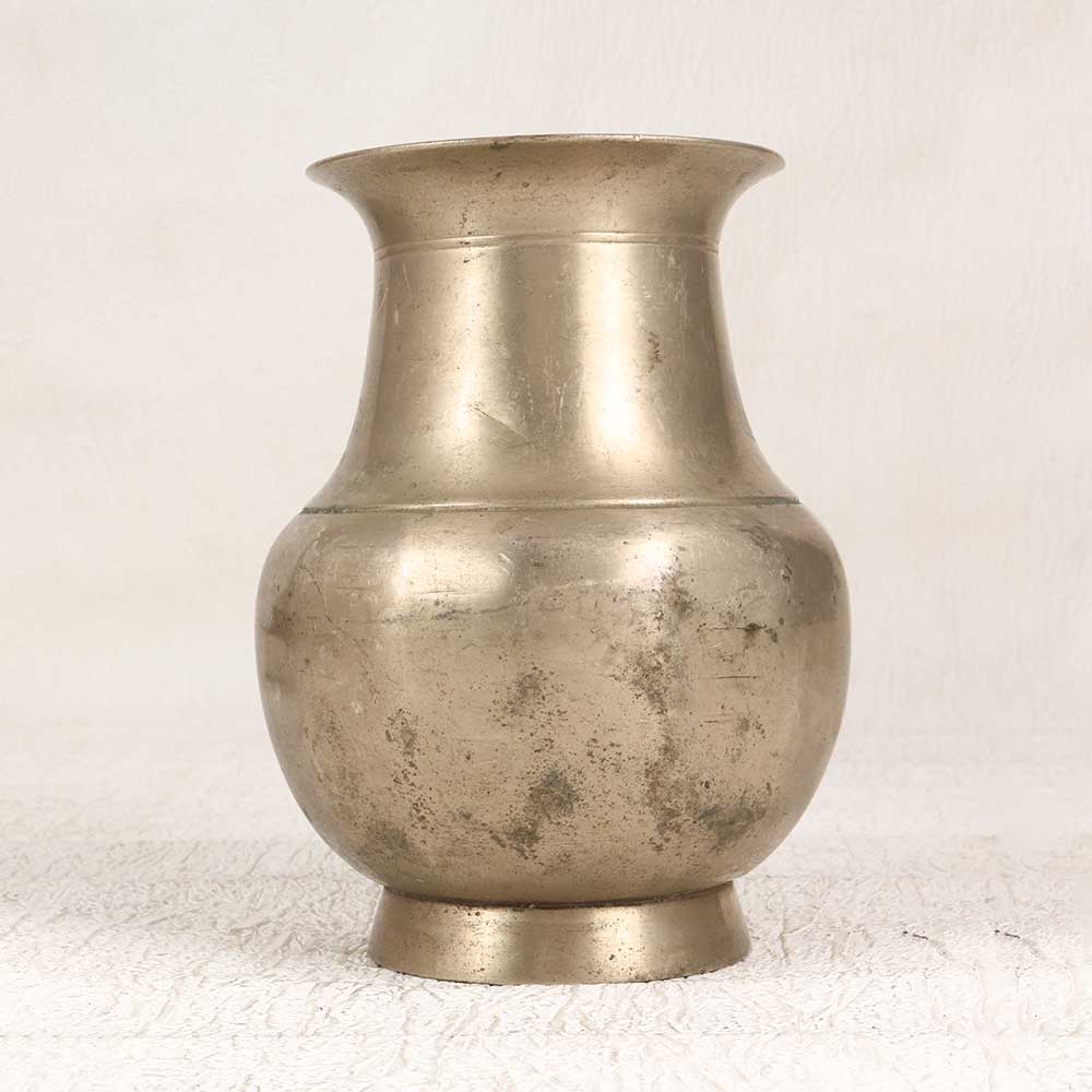 Transport yourself to the bustling bazaars of South India with this stunning vintage brass pot. Lovingly handcrafted by skilled artisans, this pot features intricate engraved patterns that give it an exotic, one-of-a-kind look. With its eye-catching design, this brass pot is sure to spark conversation and admiration wherever it's displayed. Place a lush green plant or fresh cut blooms inside to allow the intricate detailing to shine. The brass material is weather-resistant, making it ideal for both indoor and outdoor use. For anyone looking to add a touch of global charm and elegance to their home, this vintage brass pot is the perfect choice. Its artisanal craftsmanship and traditional South Indian motifs create a statement piece that feels simultaneously rustic and refined. Let this pot transport you on a journey to exotic lands every time you look at it.