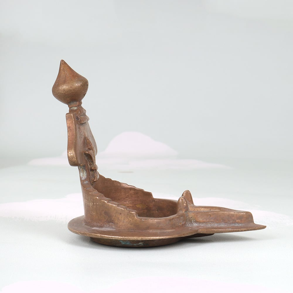 Illuminate your space with the timeless beauty of the Vintage Brass Gaja Lakshmi Oil Lamp. This stunning piece of South Indian art is a captivating blend of tradition, craftsmanship, and functionality. The Vintage Brass Gaja Lakshmi Oil Lamp is more than just a lighting fixture - it's a work of art that will transport you to the rich cultural heritage of South India. The Gaja Lakshmi motif, depicting the goddess Lakshmi seated atop an elephant, is a revered symbol of good fortune and wealth. When lit, the lamp casts a mesmerizing glow, filling your space with a sense of tranquility and timeless elegance. This oil lamp is a must-have for those who appreciate the beauty of traditional Indian craftsmanship. It makes a stunning centerpiece on a mantel, side table, or altar, and its compact size allows it to seamlessly blend into any decor. Whether you're looking to add a touch of cultural sophistication to your home or seeking a meaningful gift for a loved one, the Vintage Brass Gaja Lakshmi Oil Lamp is a true treasure that will be cherished for years to come.
