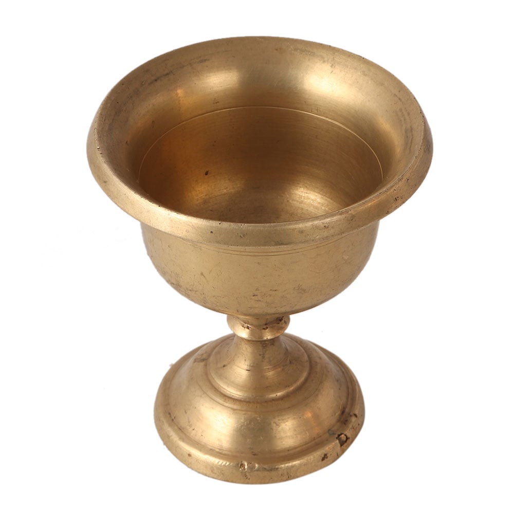 The traditional Indian bronze cup has a stand to hold on the surface. It has a shiny appearance. It is used for worshipping the gods. A perfect gift for your spiritual friend or relative.