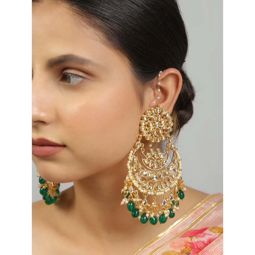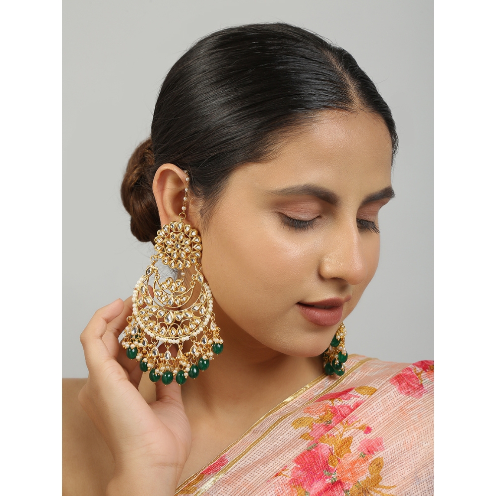 These traditional chandbali earrings combine intricate kundan craftsmanship with elegant proportions, offering a refined statement piece loved by brides, stylists, and ethnic jewellery collectors.