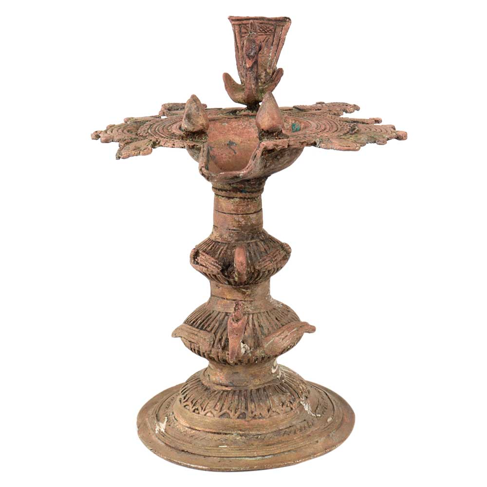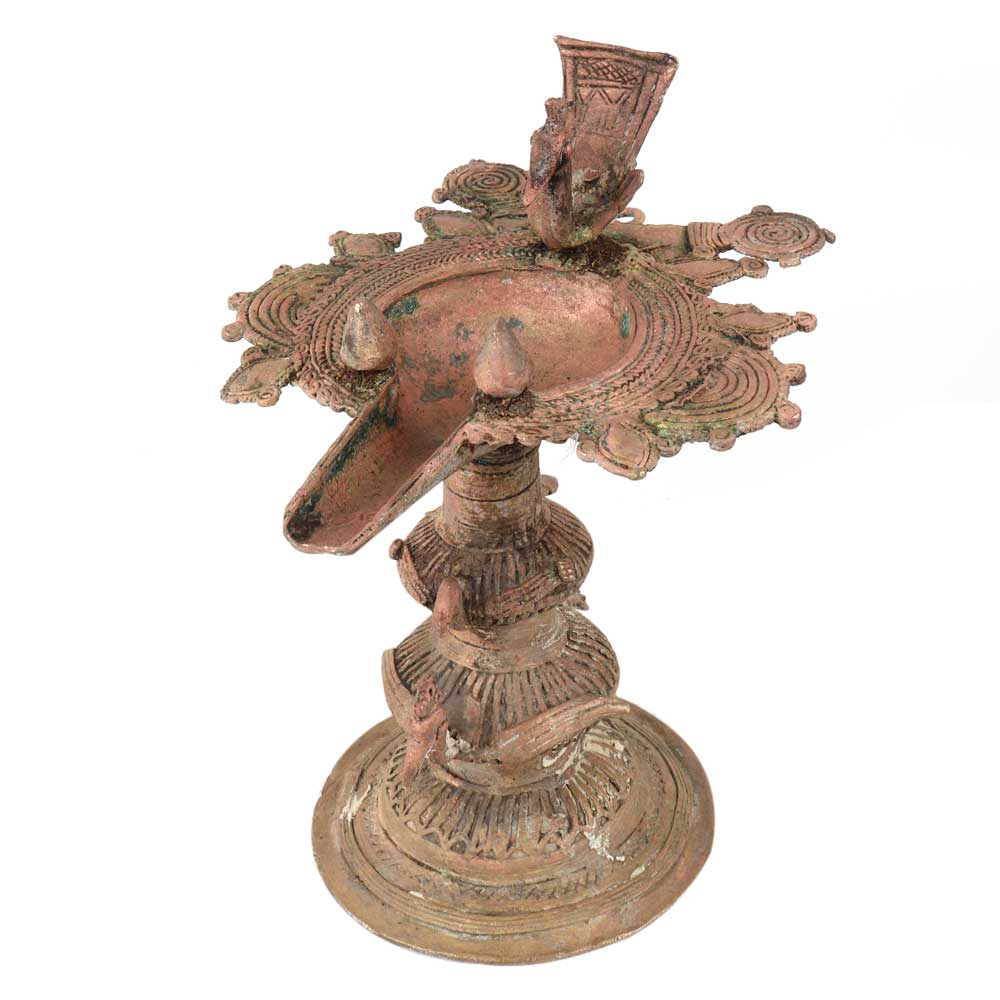 Traditional Peacock Oil lamp Dhokra Metal Tribal Art