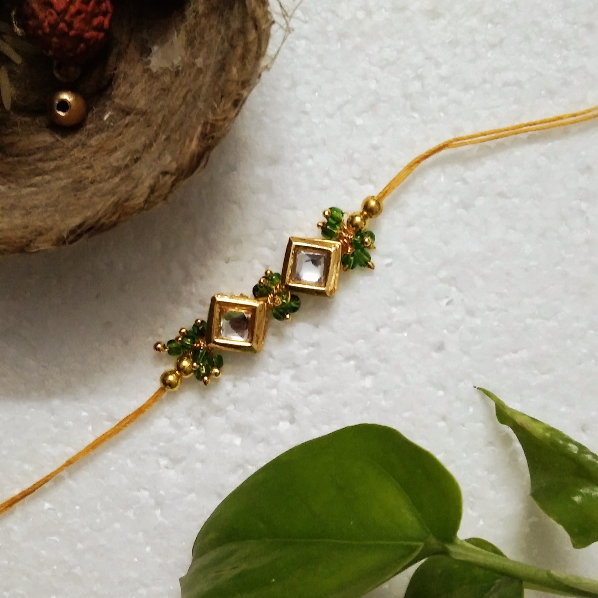 • Traditional Rakhi with Acrylic, Kundan Beads, Wooden, Metal