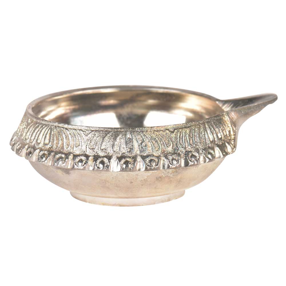 Traditional Sacred Prayer Collection Silver plated Kuber Deep Diya is crafted for your daily prayers from high-grade Brass and embellished With an ornate pattern and lovingly etched With a simple yet elegant pattern.