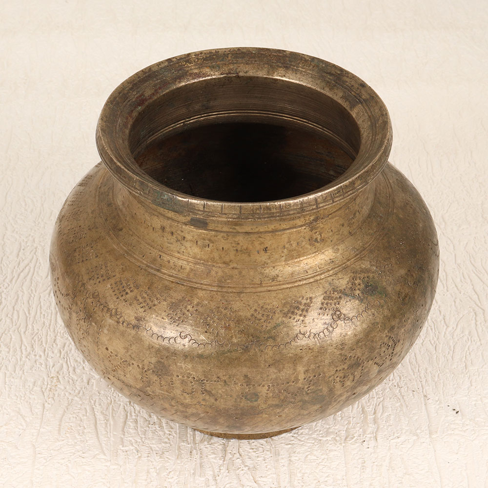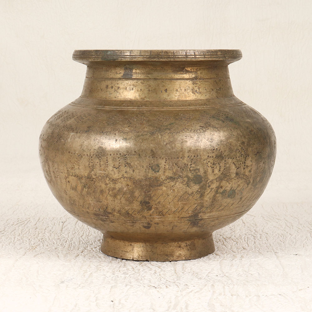 Immerse your sacred moments in timeless elegance with our Vintage Brass Holy Water Pot which is a masterpiece handcrafted by skilled Indian artisans in the distinguished South Indian Art style. This exquisite pot, crafted from high-quality brass, boasts an antique brown finish that exudes an aura of tradition and reverence. Designed for prayer, rituals, and havans, this holy water pot features intricate engravings that tell a story of spiritual significance. Its versatile nature allows it to grace the ambiance of your home, office, restaurant, hotel, or cafe prayer room with a touch of divine charm. Beyond its sacred purpose, this pot doubles as an indoor flower pot, seamlessly blending spirituality with aesthetics. The authenticity of its handmade craftsmanship makes it a unique addition to any vintage collection, while its antique allure ensures it becomes a timeless keepsake. Express your devotion or share blessings by gifting this brass masterpiece to your loved ones on special, festive, or auspicious occasions.