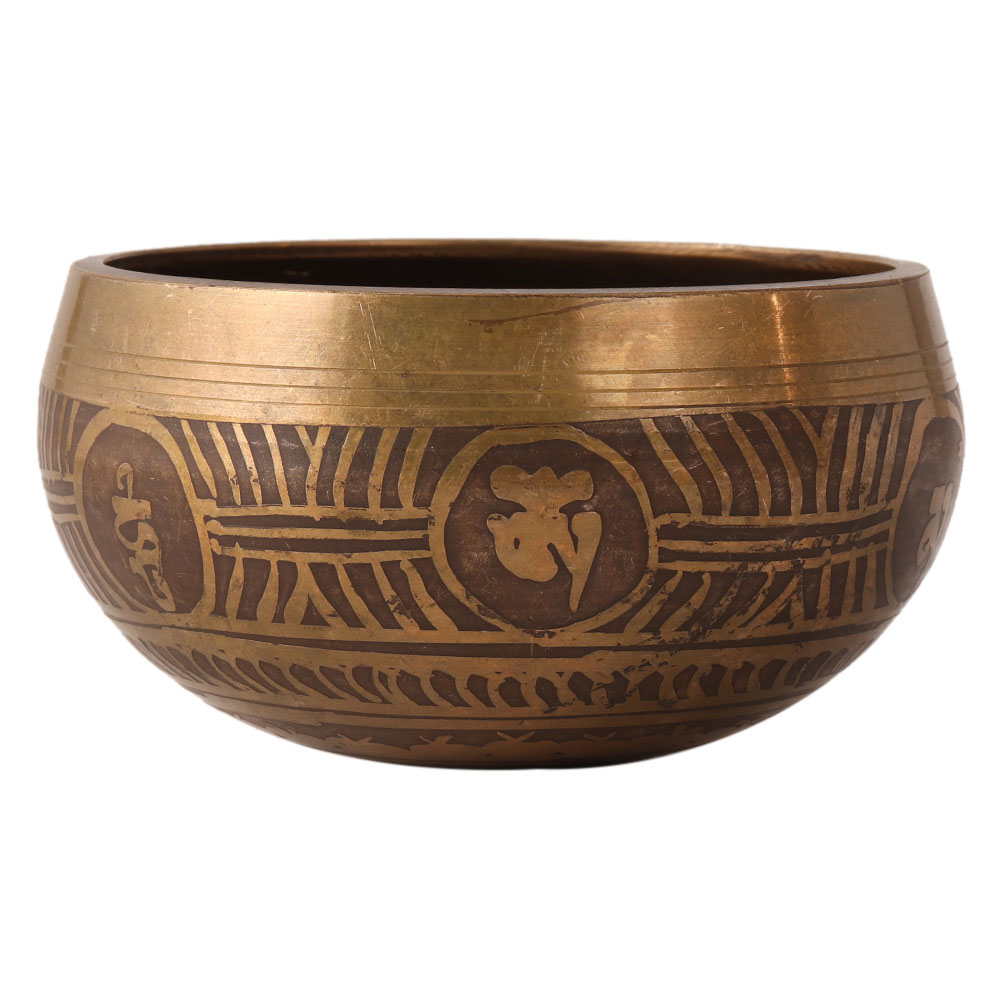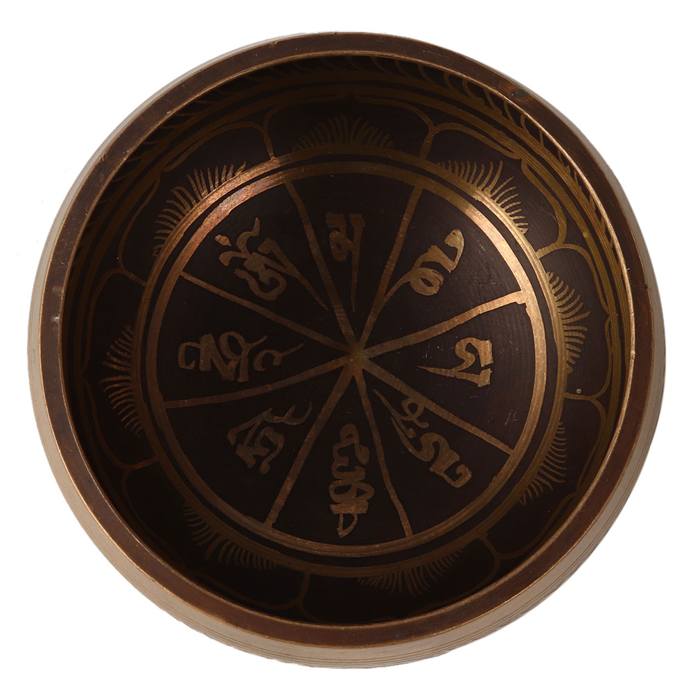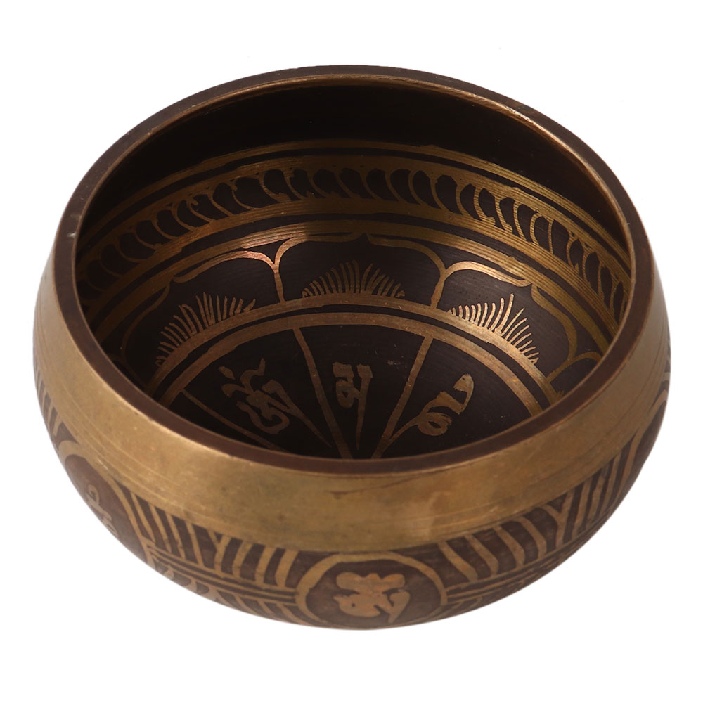 A Tibetan singing bowl engraved with alluring motifs. This singing bowl is traditionally made by skilled workers with their hands. It is made of bell metal. Tibetan singing bowls are used for meditation, relaxation of body and mind, etc. It has been used for centuries by numerous professionals such as doctors, singers and teachers. It is believed to provide deep relaxation of the brain. Put it on your table or a shelf in your home, it will be an eye-catcher for your guests. A gift for all special occasions for your loved ones and close ones.