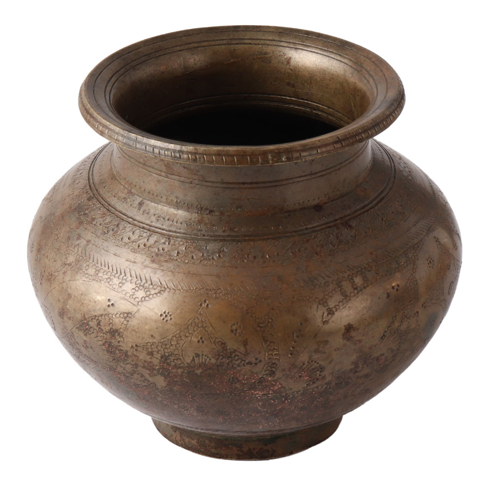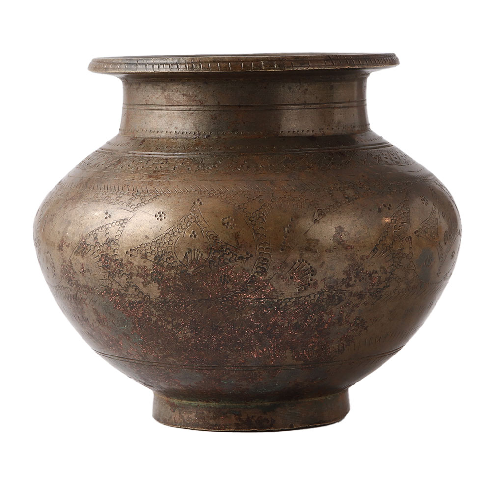 Traditionally Carved Brass Lota Pot In Black Finish
