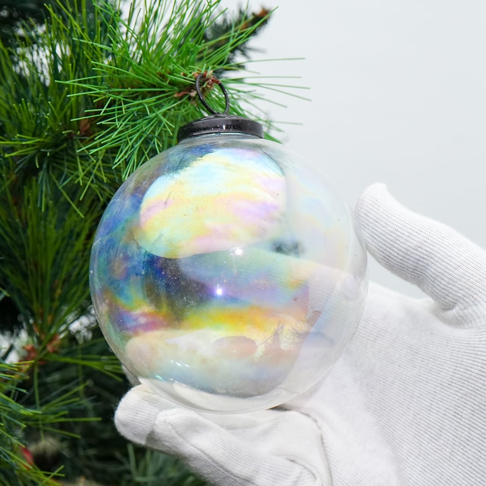 Transparent Round Glass Hanging Ornament. Crafted from high-quality glass with a smooth glossy finish, this decorative bauble adds a classic and festive touch to Christmas trees, wreaths, and holiday displays.