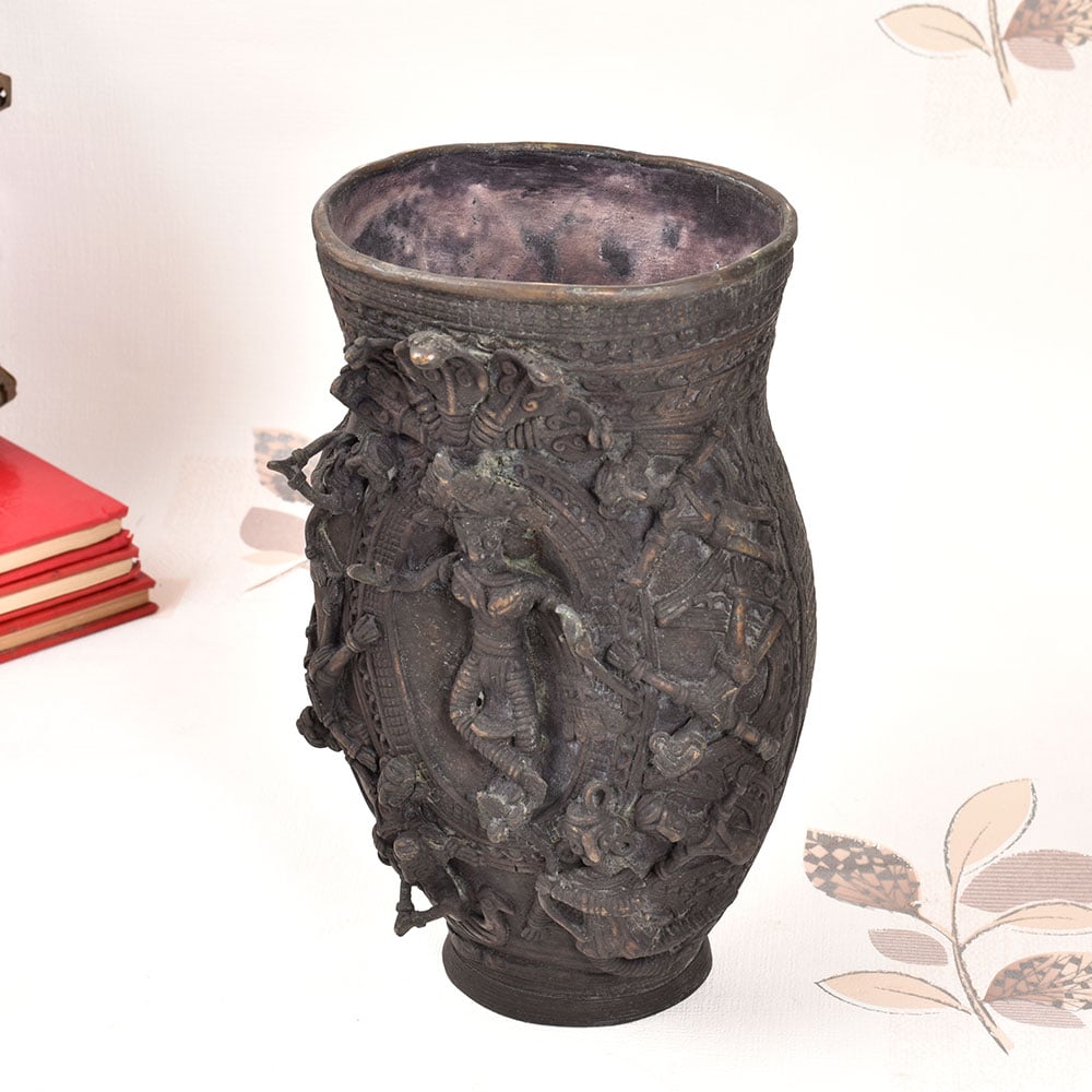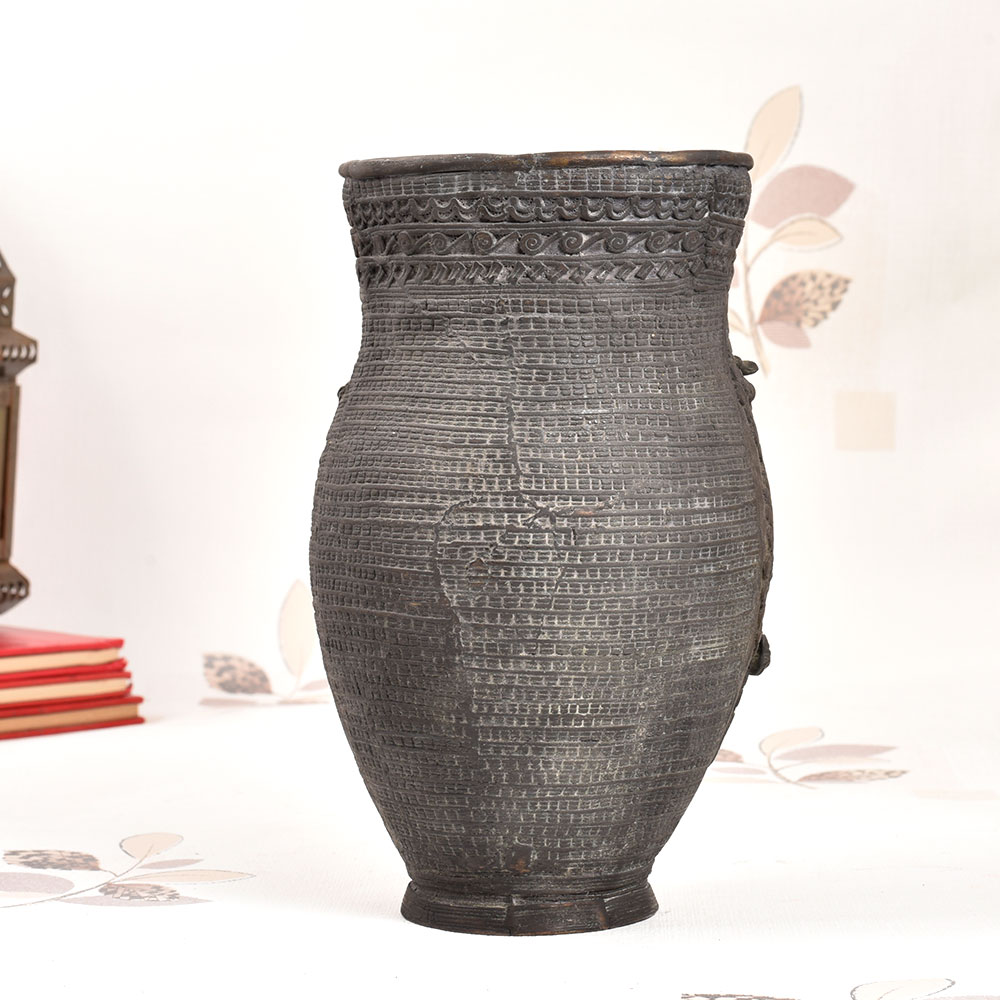 Elevate your space with the captivating presence of our Vintage Brass Flower Pot. Adorned with intricate Tribal Art engravings in a rich, dark finish, this stunning piece is a work of art that doubles as a functional home accent. Bring the spirit of ancient cultures into your modern living space with this exceptional flower pot. The Tribal Art engravings, masterfully etched into the brass, tell a timeless story of connection to nature and community. Display this piece proudly as a conversation-starting centerpiece or use it to breathe life into a forgotten corner. Whether you're a seasoned plant parent or simply seeking to elevate your interior, the Vintage Brass Flower Pot is a must-have addition. Its striking visual interest and practical functionality make it an invaluable asset to any home. Invest in a piece that celebrates the beauty of time-honored craftsmanship and transforms your space into a sanctuary of cultural appreciation.
