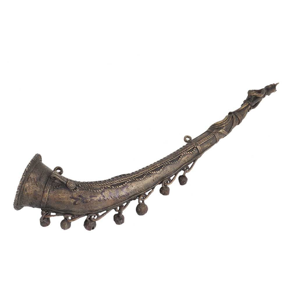 This Tribal art bugle is known to add a distinctive charm to your household and add a brilliant shine to your balcony. The tribal artists take extreme care to craft items from the best materials, and this product too features brass work. Bugle comes from a family of instruments that play loudest,which is why it is used widely by tribals and the army. If you love collecting vintage items, then this one is the perfect product for you.