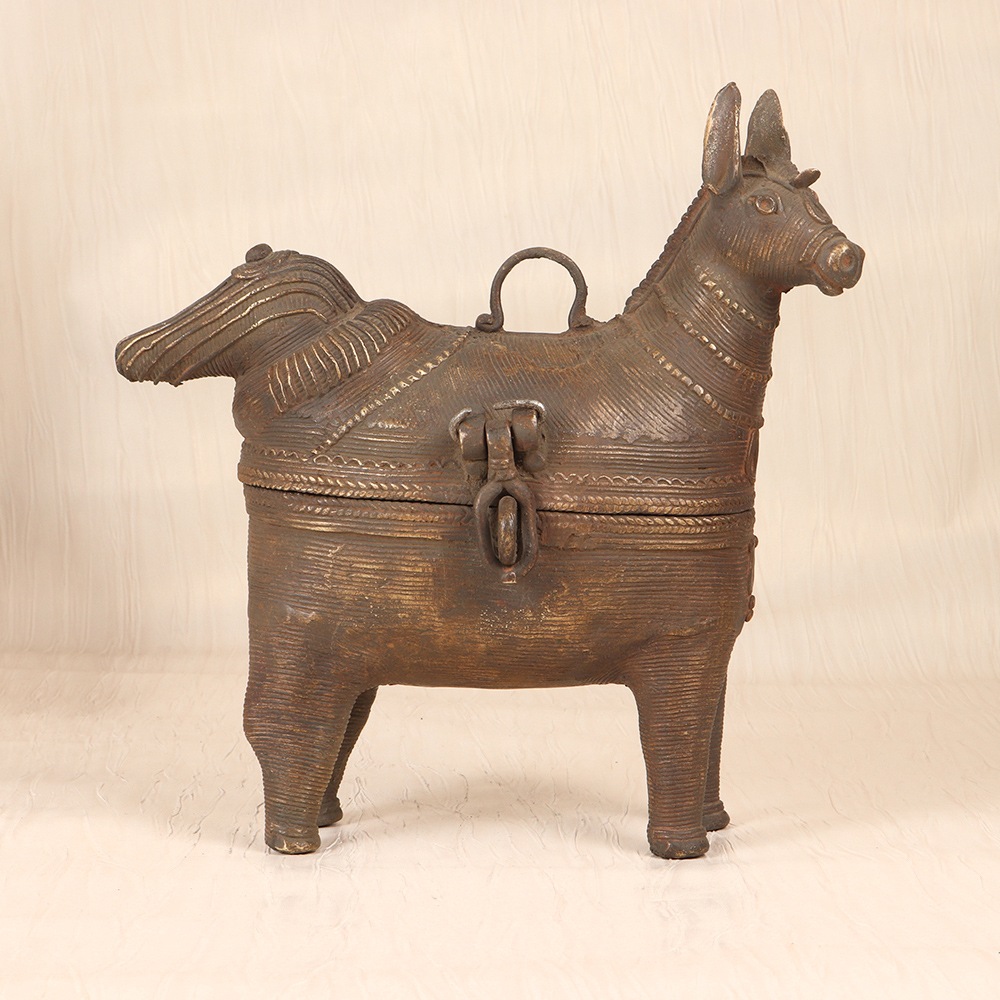 - Handcrafted brass jewelry box with intricate horse head design