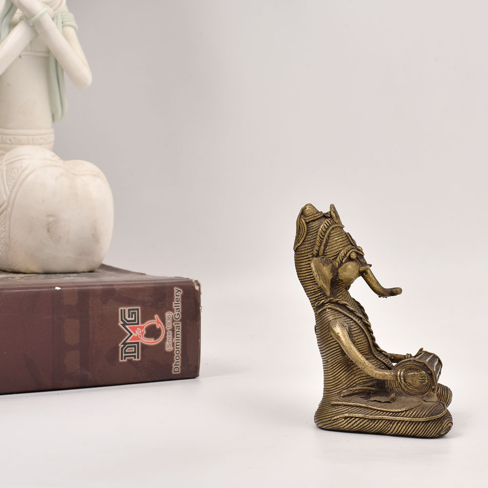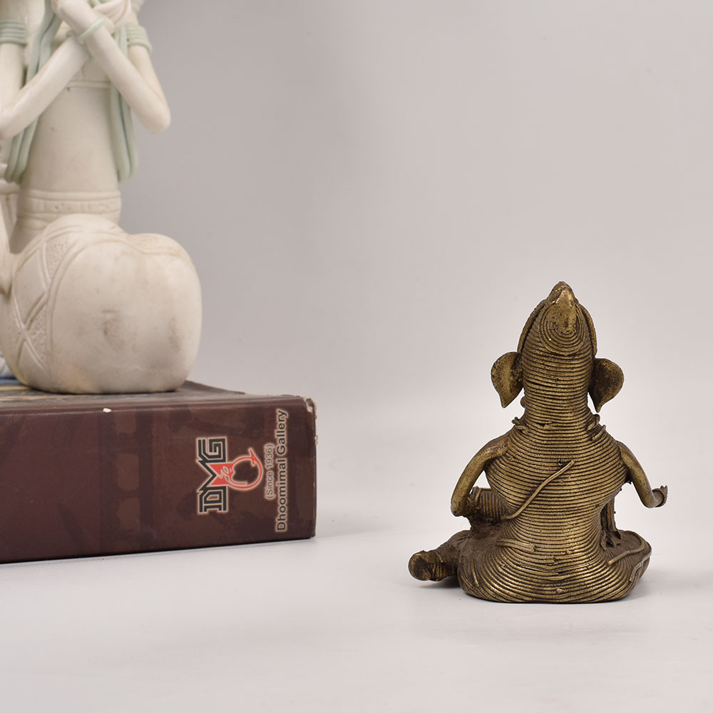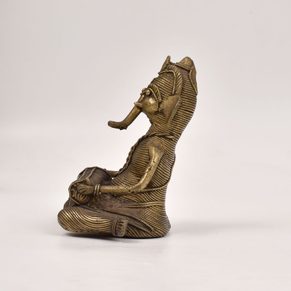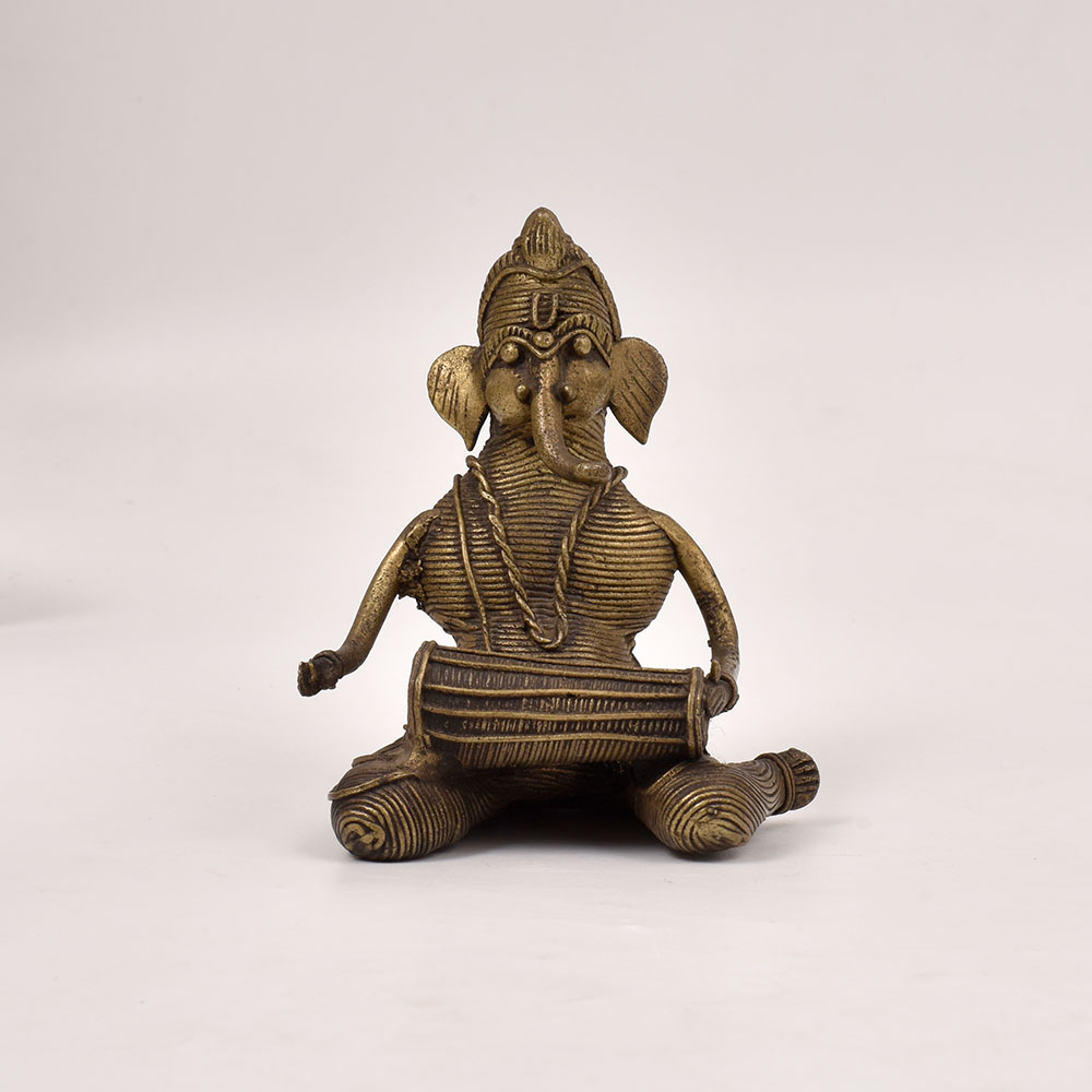 This magnificent brass statue of Lord Ganesha is a truly special piece that will imbue your home with a sense of timeless elegance and spiritual energy. Crafted by skilled artisans in the Tribal Art region of Odisha, India, it showcases Ganesha in a dynamic pose, playing a traditional drum instrument that symbolizes the rhythm of life. The level of intricate detail in the statue is simply breathtaking, from the ornate patterns adorning Ganesha's body to the realistic textures of the drum. With its substantial size and heft, this brass Ganesha statue commands attention as a captivating centerpiece or accent piece. Display it prominently to cultivate an atmosphere of wisdom, prosperity, and spiritual enlightenment in your home or office. Whether you're a collector of fine Indian art, a devotee of Lord Ganesha, or simply someone who appreciates beautiful, high-quality home decor, this brass Ganesha statue is a must-have piece that will be treasured for generations.