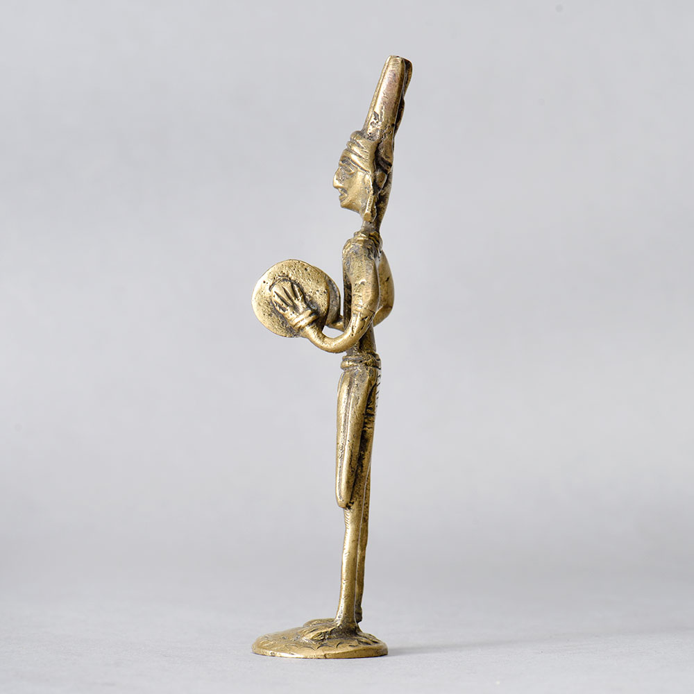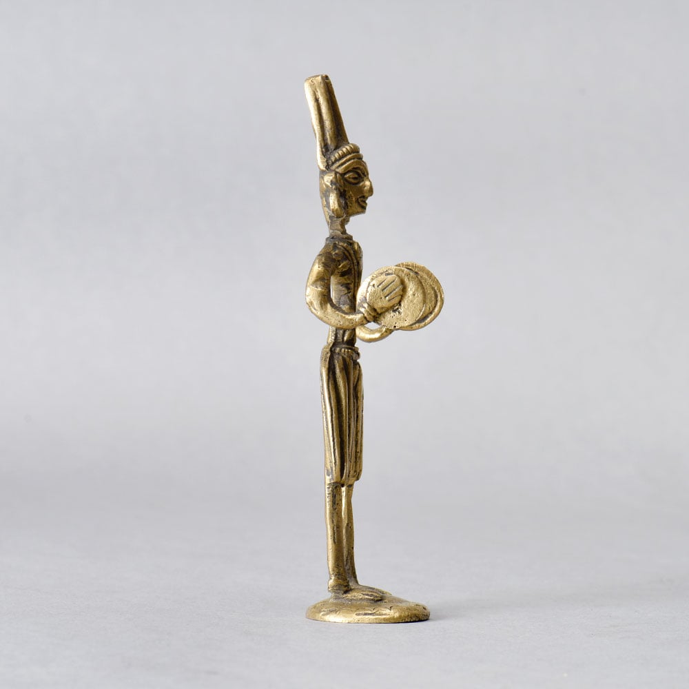 Bring the rhythmic soul of ancient India into your home with this captivating brass tribal man playing the manjeera. This stunning sculpture captures the essence of traditional tribal art, inviting you to experience the rich cultural heritage that has inspired musicians and artists for generations. This brass tribal musician is more than just a decorative piece - it's a window into a world of vibrant, soulful artistry. Imagine the beautiful, rhythmic melodies that would emanate from his nimble fingers, transporting you to the bustling markets and sacred temples of India's past. Display this stunning sculpture in your living room, office, or meditation space, and let it fill your environment with the captivating spirit of traditional tribal culture. Whether you're a lover of world music, a collector of unique art, or simply someone who appreciates the beauty of handcrafted décor, this brass tribal man playing manjeera is a must-have addition to your home. Bring the mesmerizing sounds and timeless aesthetics of India's rich heritage into your space, and let this sculpture inspire you to explore the depth and diversity of global artistic traditions.