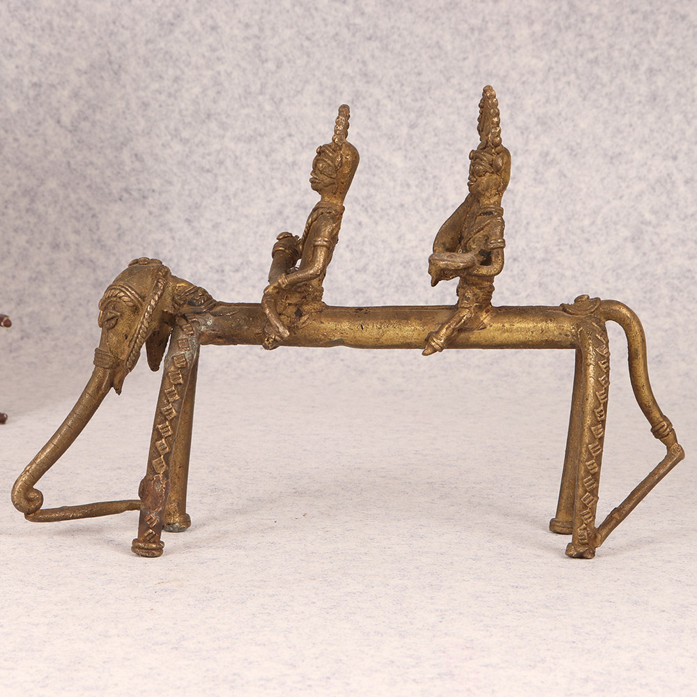 Discover the captivating allure of this exquisite vintage brass elephant sculpture, where the intricate details and rich cultural influences come together to create a mesmerizing centerpiece for your home. Crafted with meticulous attention to detail, this long-limbed elephant features two tribal riders perched atop, showcasing a stunning blend of artistry and functionality. Elevate your living space with the captivating presence of this vintage brass elephant sculpture. Its striking design and cultural significance will spark conversations and inspire awe in all who witness it. Whether you're a collector of unique home decor or simply seeking to infuse your space with a touch of global charm, this exceptional piece is sure to become a cherished addition to your household.