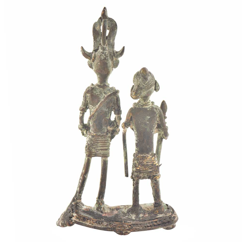 World Famous Dhokra Art Brass Sculpture of couple performing tribal dance. The motifs used are generally taken from the nature. Elephants, Turtles, etc are made at large in Dhokra craft. The images of various deities are also crafted by the artisans.