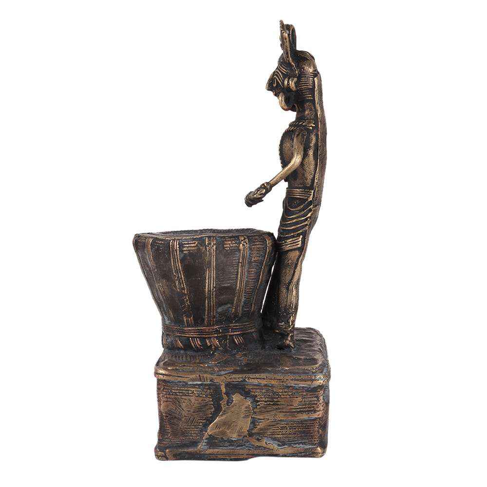 • Tribal Brass Drummer Musician Statue In Dark Finish