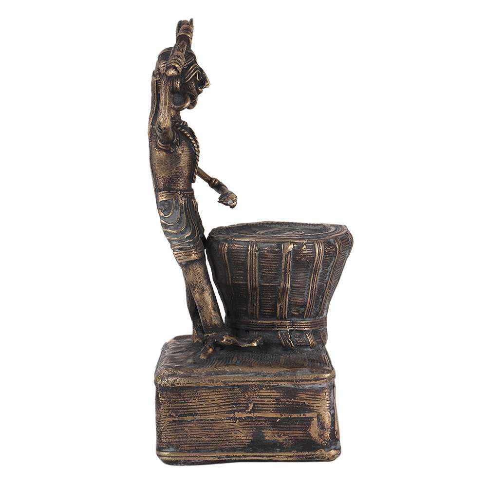 The man drummer statue is made using traditional tribal techniques and is an important element of Indian culture and heritage. Choose a pair to accent your table or balcony.   The gorgeous man drummer statue exemplifies tribal artisans and native craftsmen' meticulous attention to detail. Brass items, on the other hand, are known for their weight and size differences.