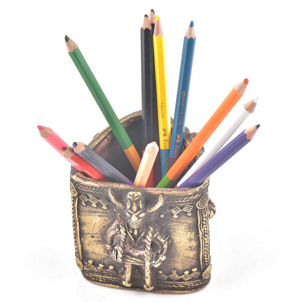 • Tribal Brass Pen Pencil Holder