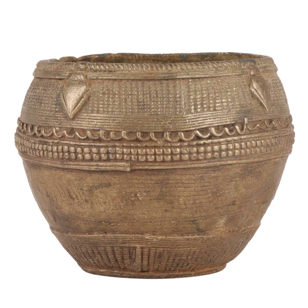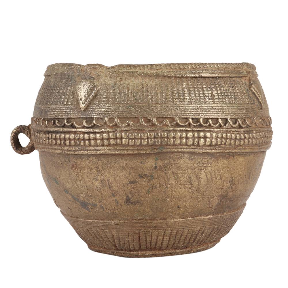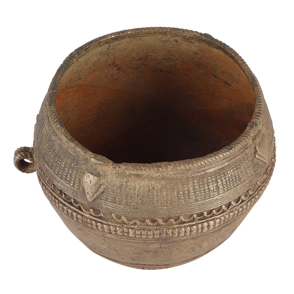 Brass tribal grain weighing pot with one sided ring holder is used as a planter.   Keep it indoors or outdoors anywhere you want to bring splendor and flare to your décor. This pot is ideal for use as a planter, waste basket, decoration, or lovely storage.  U se it as a gift for friends and family.