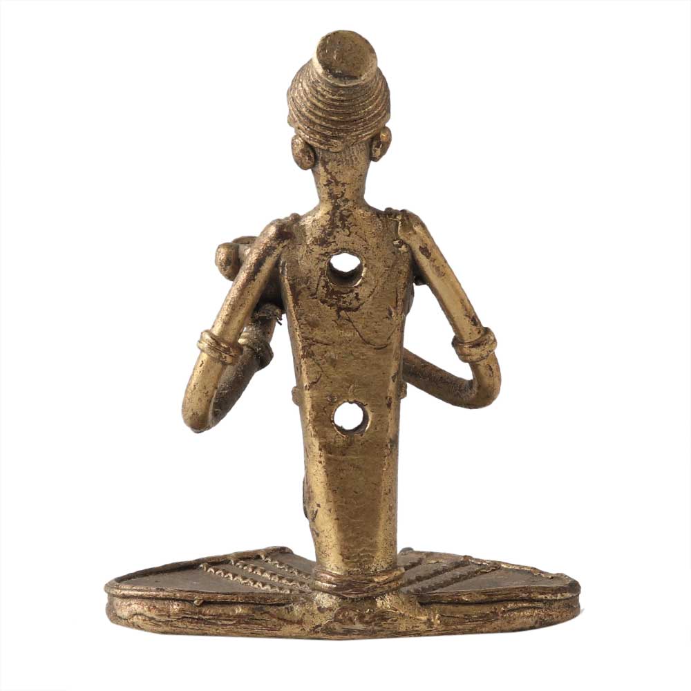 The sitting tanpura musician is a fine decorative figurine lovingly crafted in brass and inspired by Indian tribal life by our tribal artists from the interiors of Eastern India. An excellent for home decor. It is also a display piece for office desks and a present choice for housewarmings and other occasions. a great way to decorate a home or office. This statue is a possible gift for your loved ones. Brass is entirely handcrafted. Available in a golden color. The indigenous people of India made this entirely by hand. This lost-wax casting method was used to create this 100% handcrafted Dhokra Art figurine. The item is devoid of lead and comes with an aged, unfinished look.
