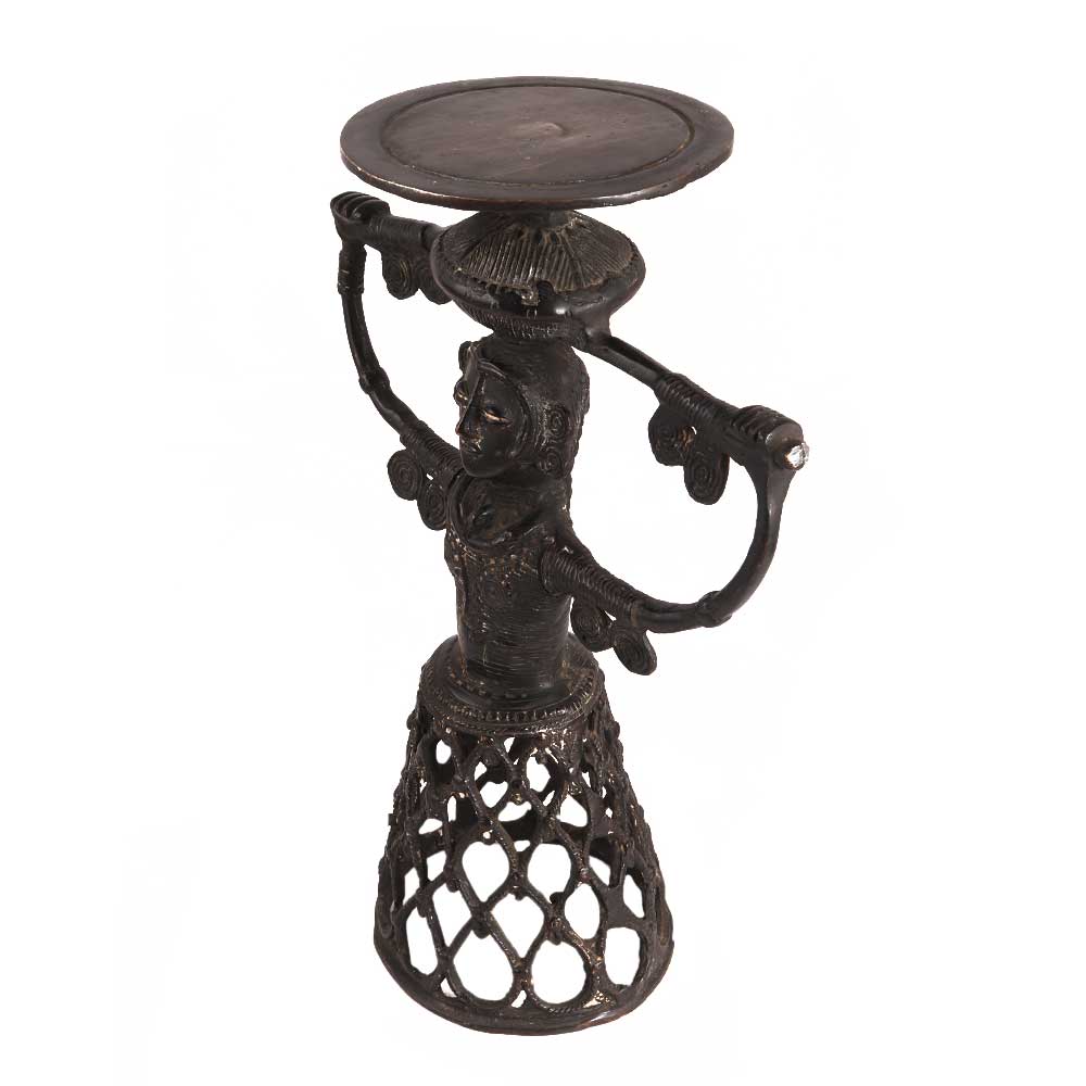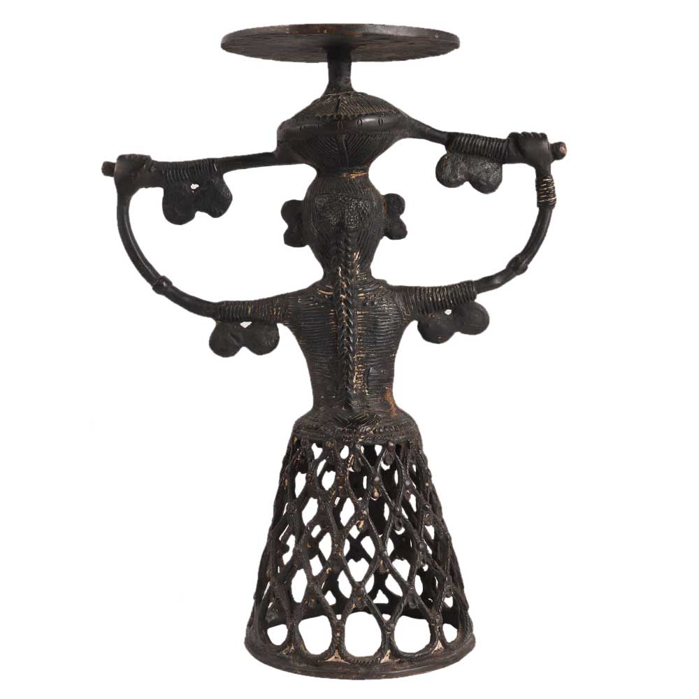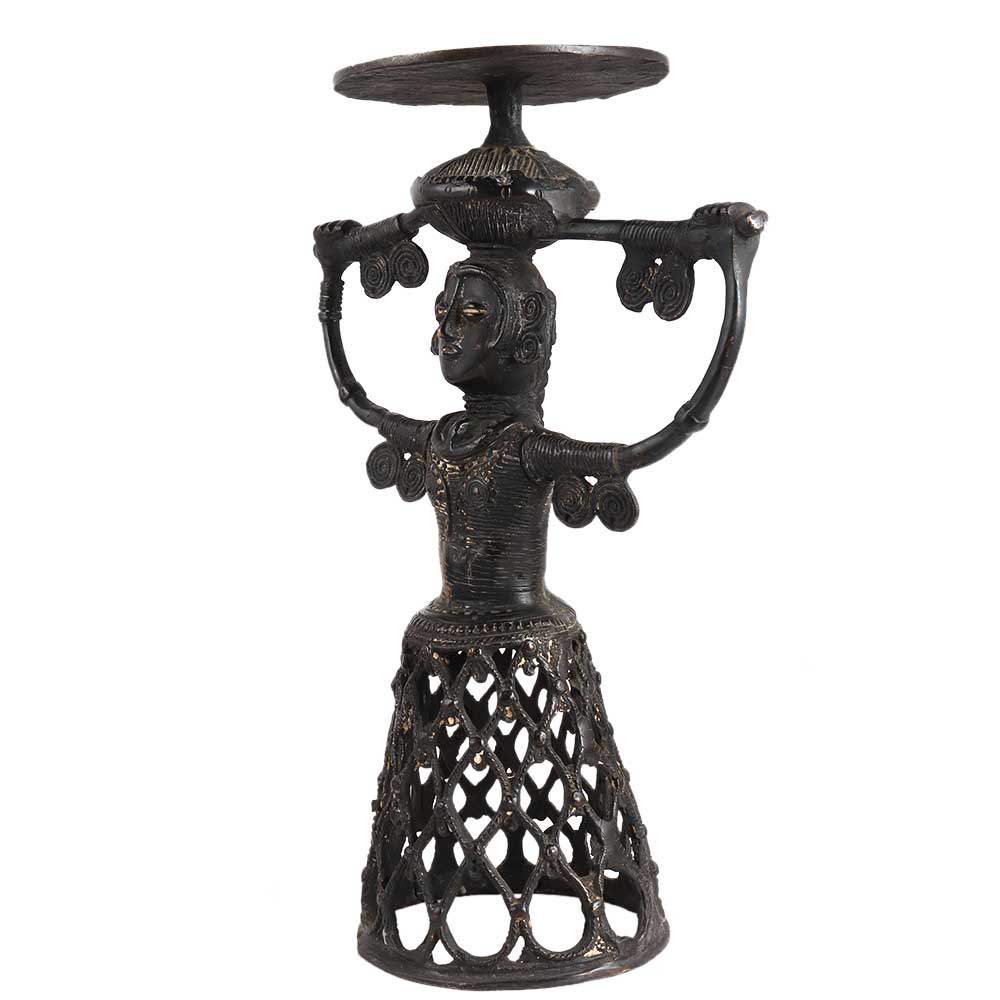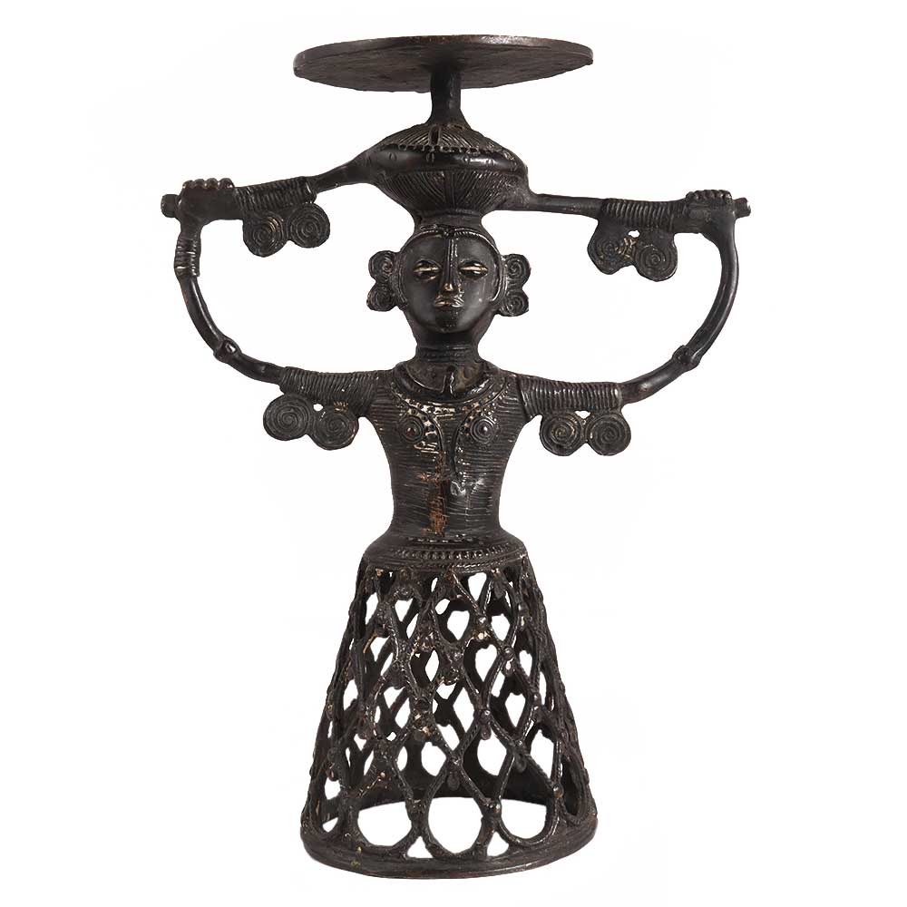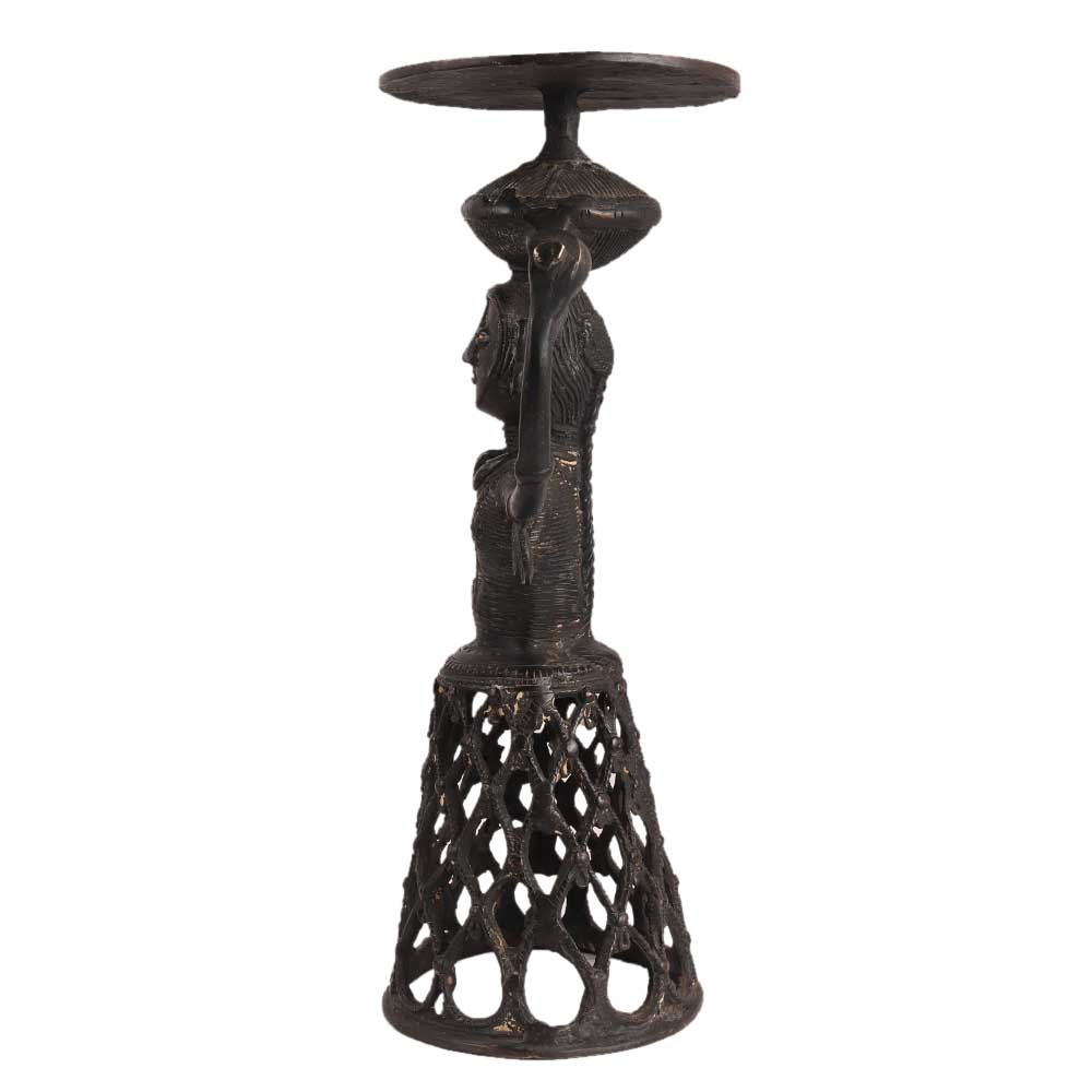 The brass candle stand is both unique and decorative, combining delicate artwork and native culture. The candle stand depicts a tribal woman whose body is shaped like a net. With the holiday season approaching, you can use this candle stand to brighten the corners of your home. The intricate design of the female figure holding the candle head can elevate your dinner table conversations.