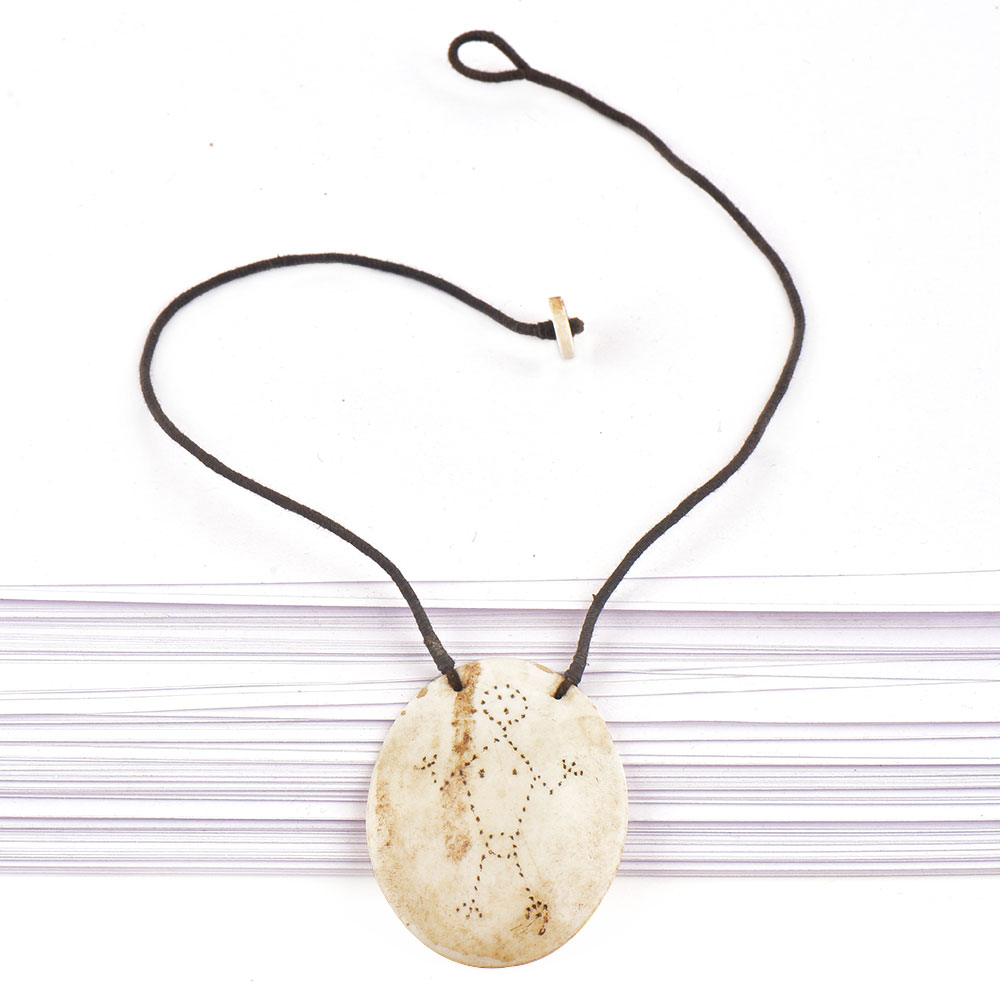 • Tribal Figure Engraved Sea Shell Pendant With Black Cord