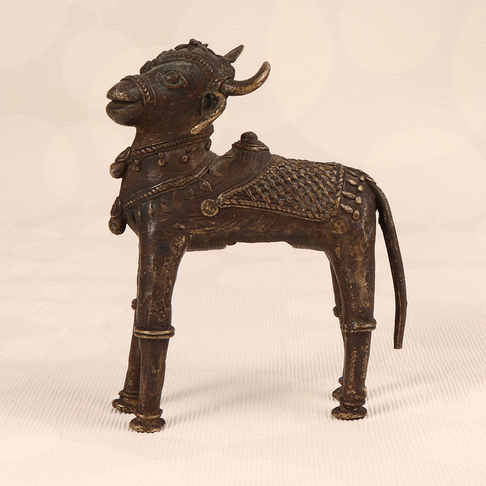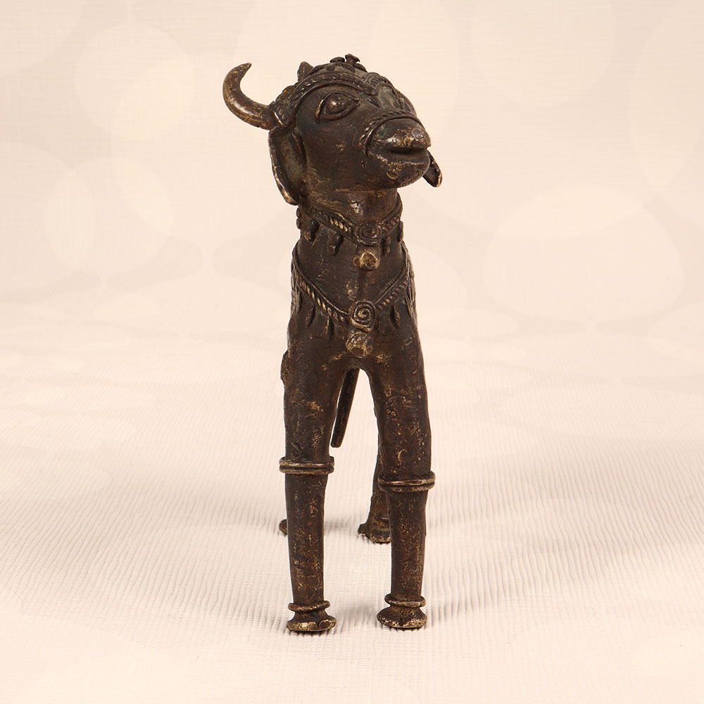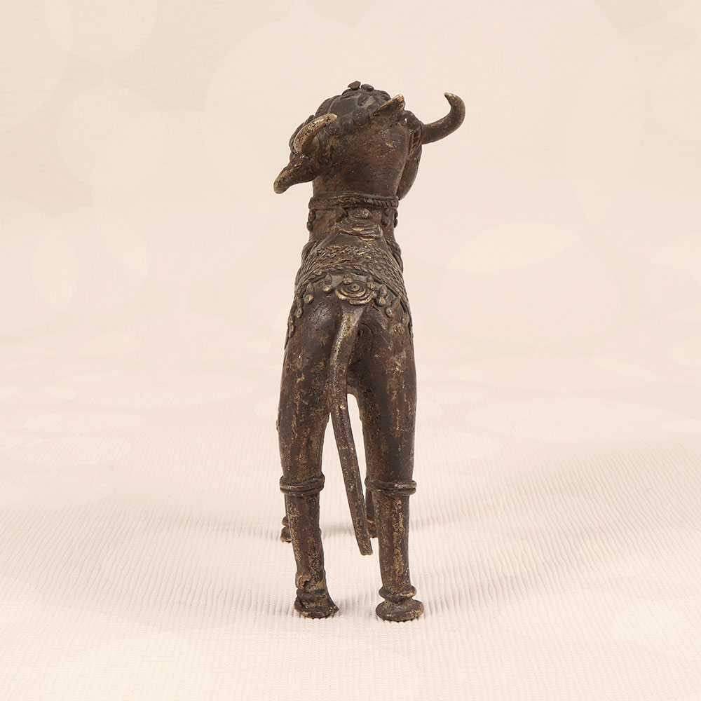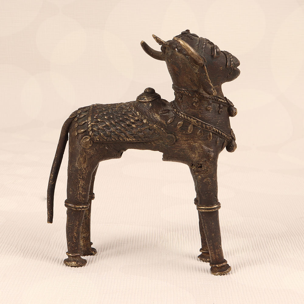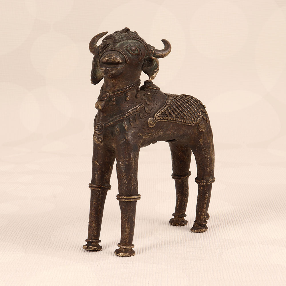 Enhance your space with the timeless charm of our Vintage Brass Nandi Statue that is a symbol of divine strength and devotion. Meticulously handcrafted by talented Indian artisans in Tribal Art, this exquisite piece showcases a dark finish that adds an air of mystique and antiquity. Nandi, the revered vahana (vehicle) of Lord Shiva, is beautifully captured in high-quality brass, embodying the rich cultural heritage of India. Perfect for adorning your home, office, restaurant, hotel, or cafe, this statue seamlessly blends spirituality with artistry. Create a sacred haven by placing it in your prayer room, or use it as a captivating decorative element to infuse your space with an aura of serenity and grace. This vintage masterpiece is not just a striking addition to your collection; it also makes for a thoughtful and auspicious gift for your loved ones on special occasions, festivals, or moments of celebration.