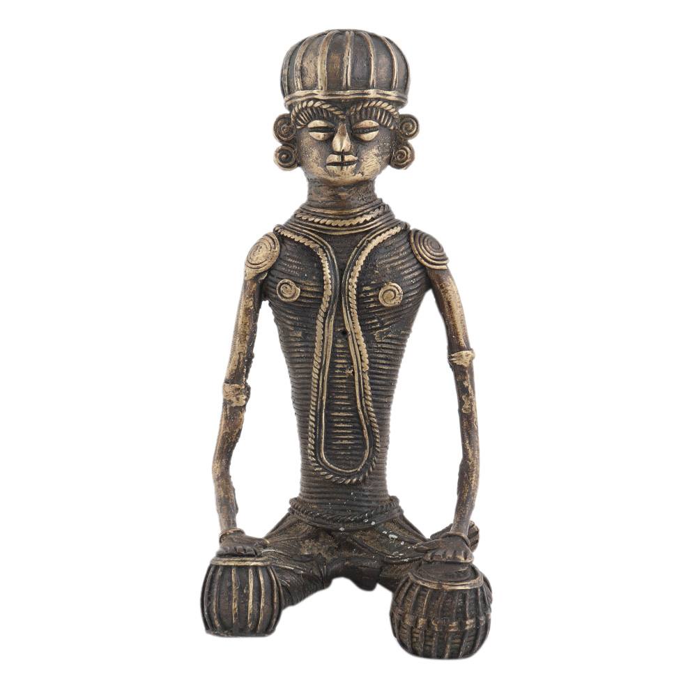 Tribal Man Drummer Statue In Brass