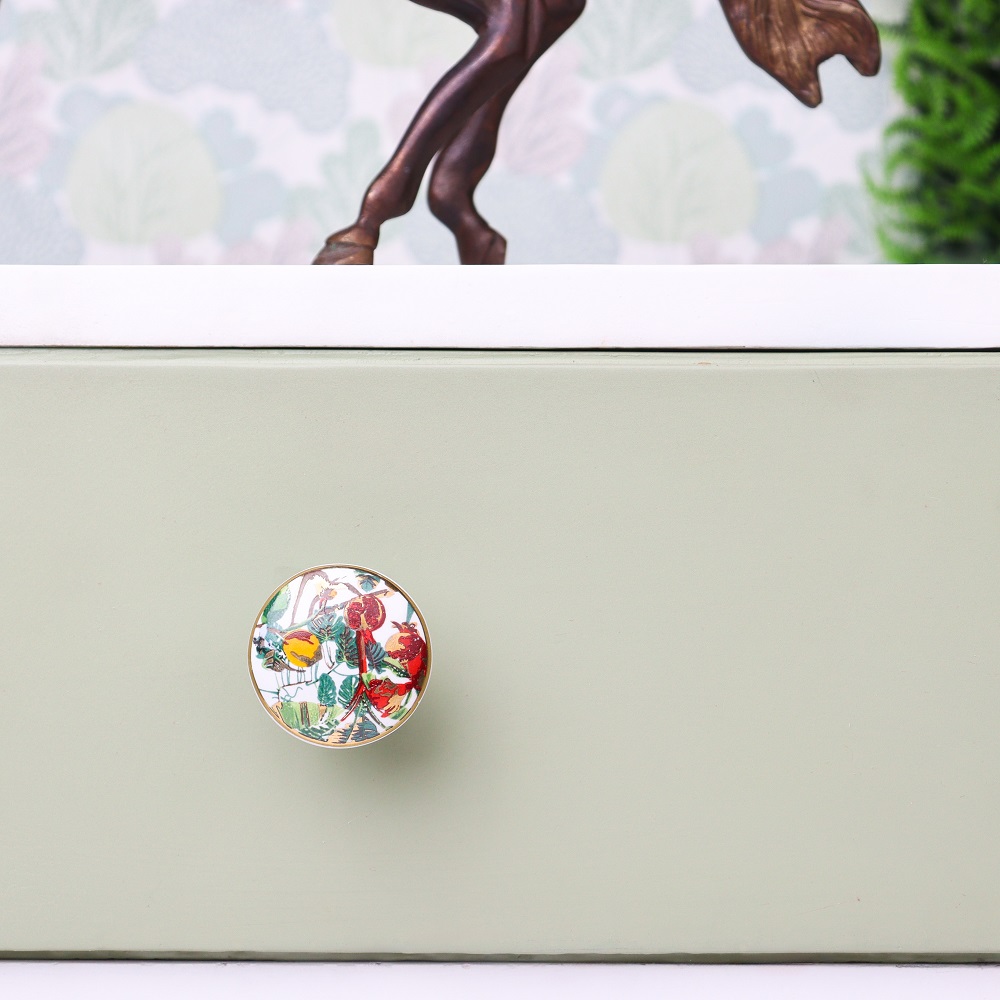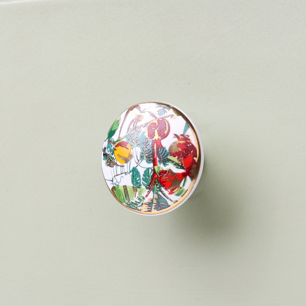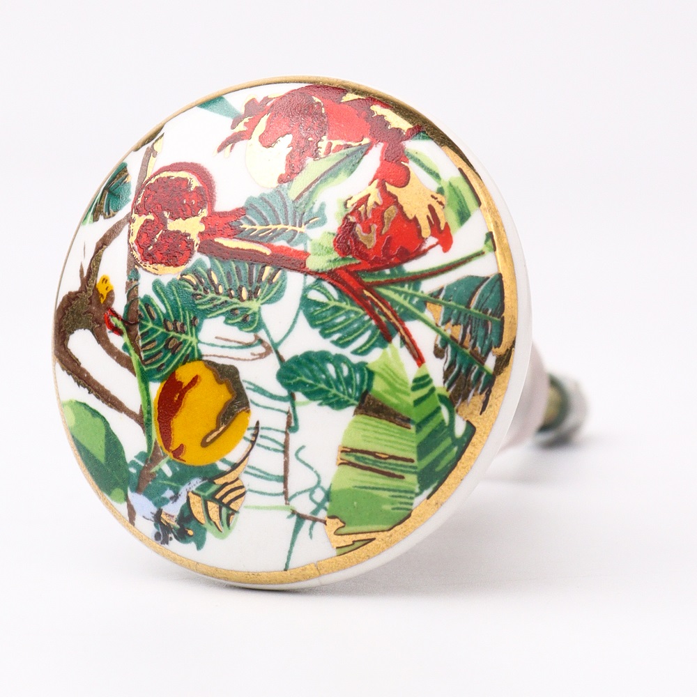 While these knobs serve as practical and functional additions to your furniture, they also serve as a striking aesthetic feature. The vibrant tropical fruits and animals, combined with the luxurious gold accents, create a cheerful and warm atmosphere in any room.