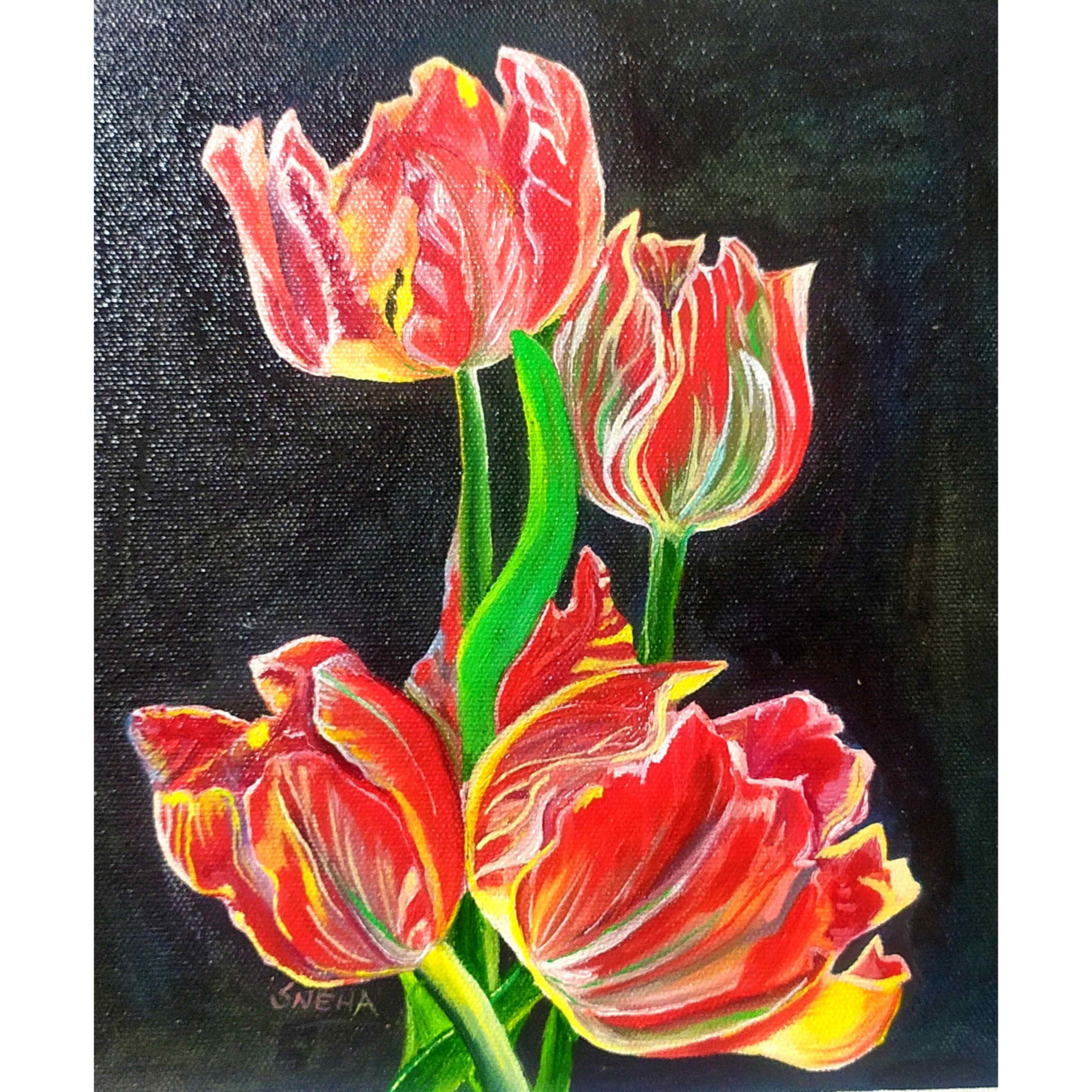 • Tulip Flowers Canvas Painting by Artist Snehaprava Maharana