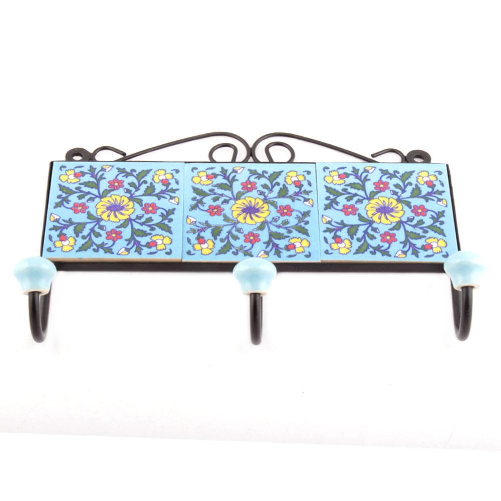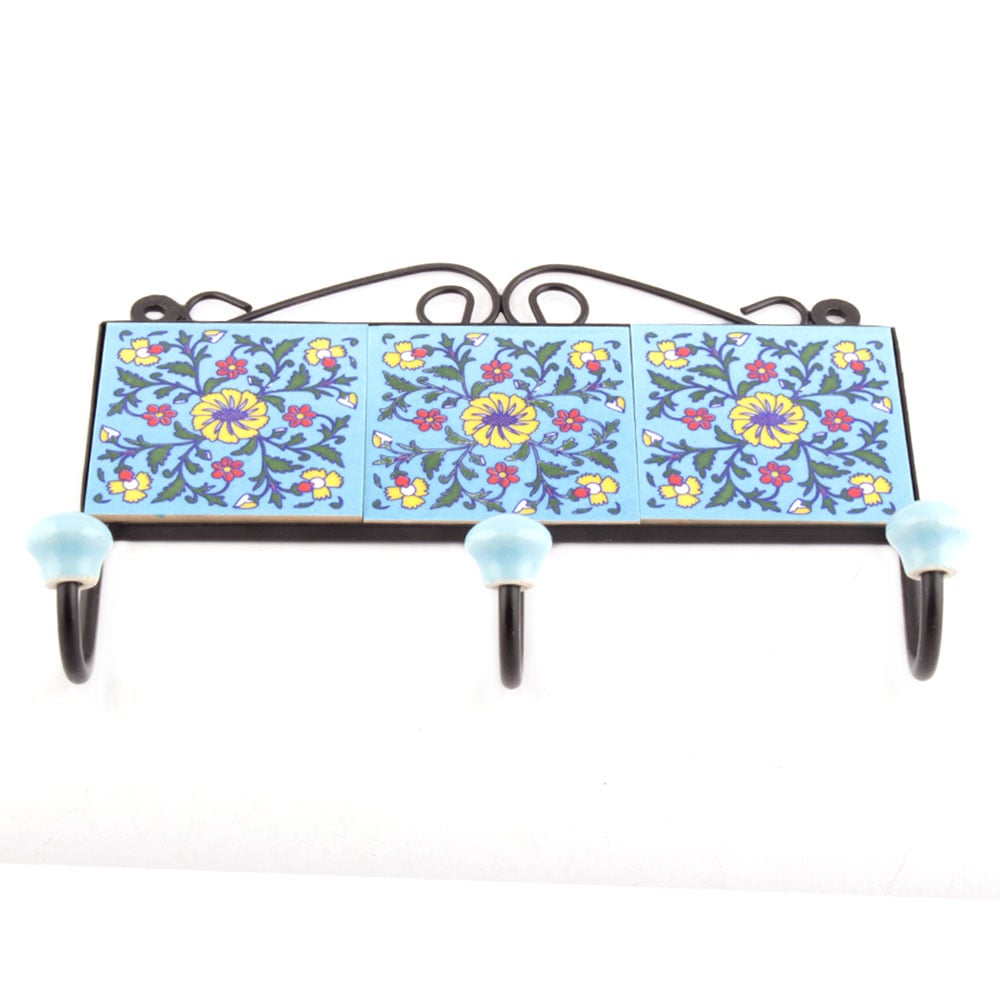 Turqoise And Yellow Wheel Flower Tiles Hooks