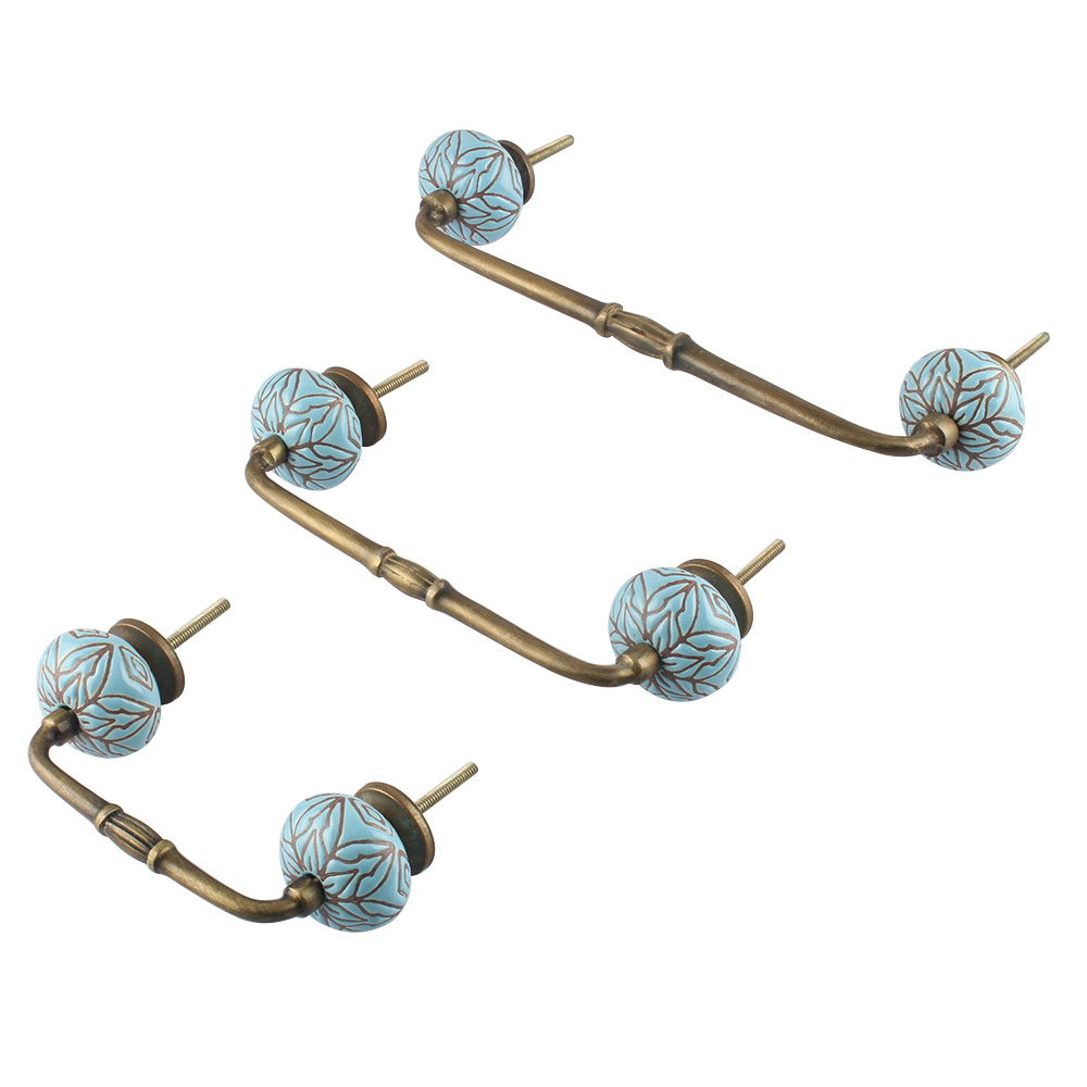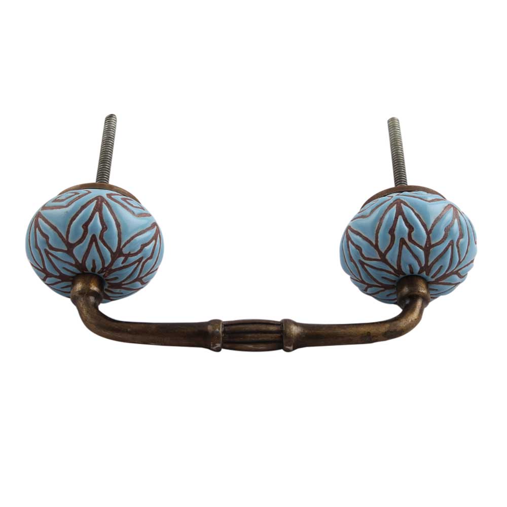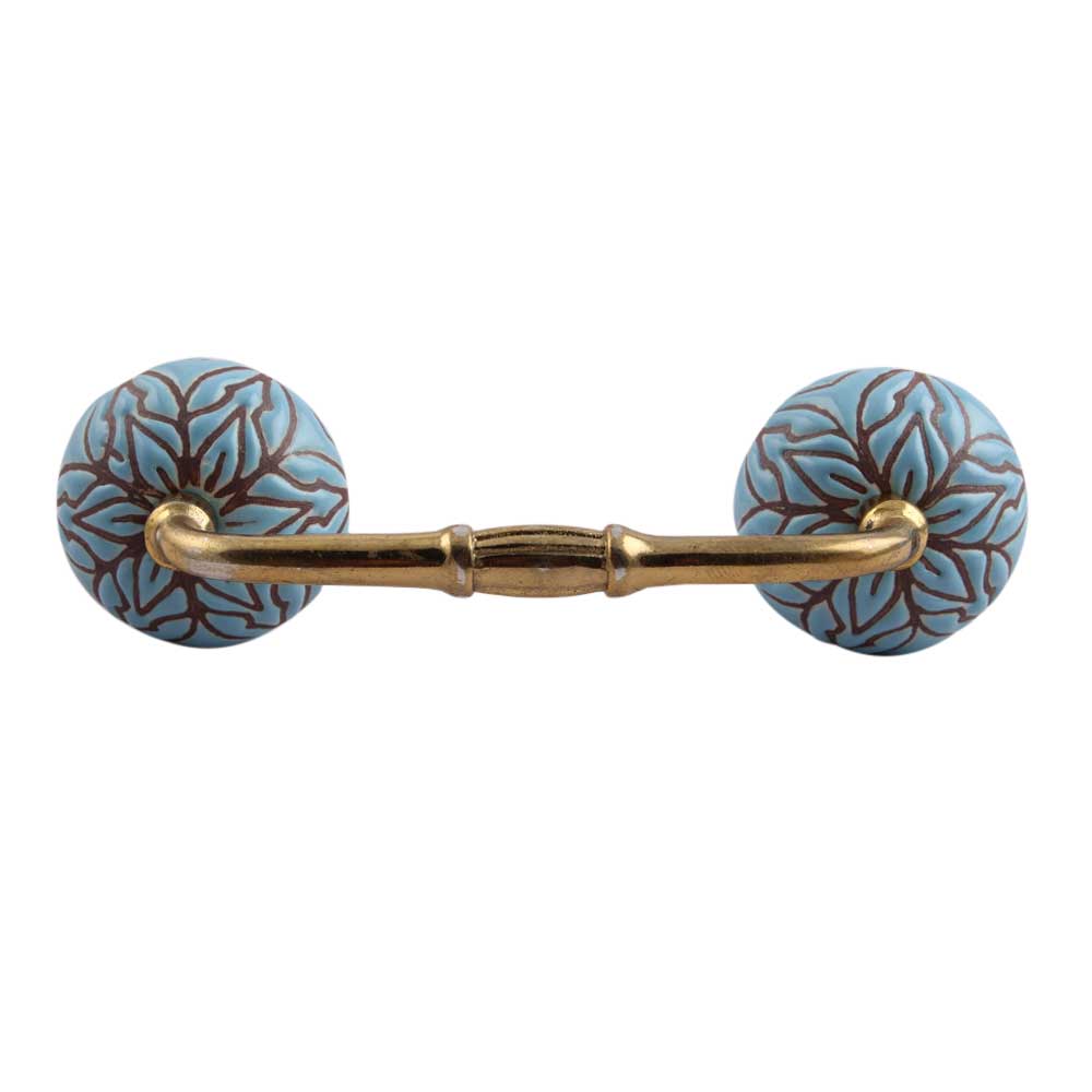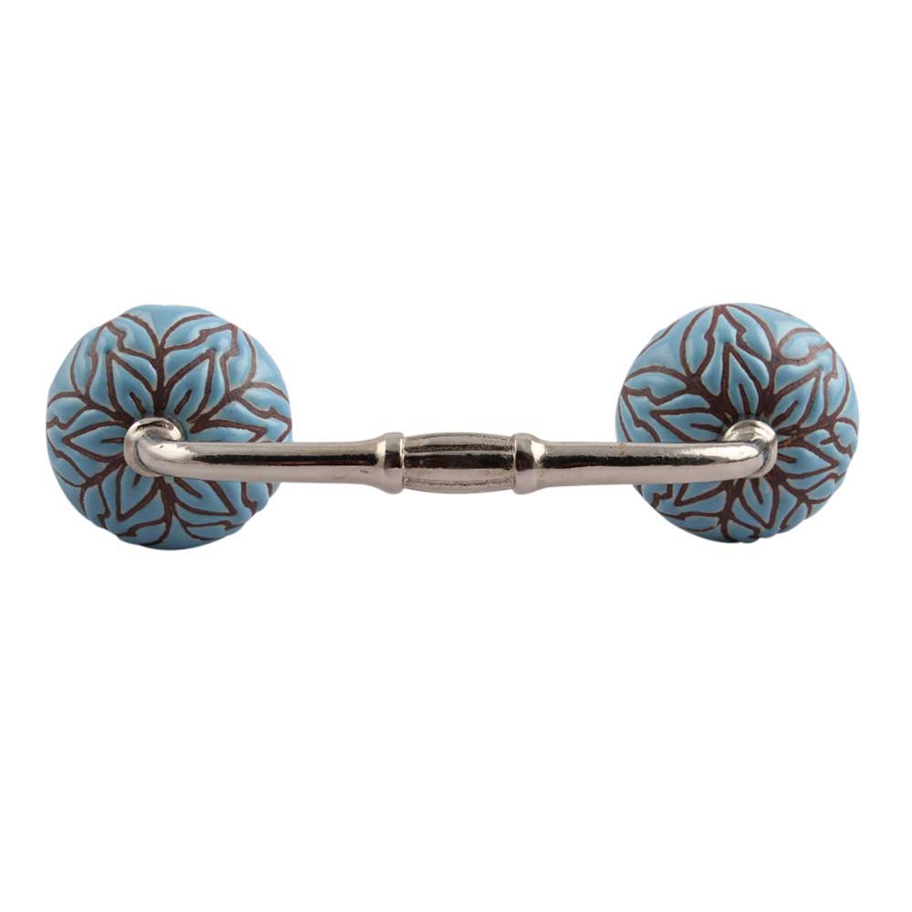Turquoise Amarylis Floral Etched Ceramic Bridge Handle. Ideal for Drawer, Dresser, Cabinet, Wardrobe, Cupboard and Almirah.