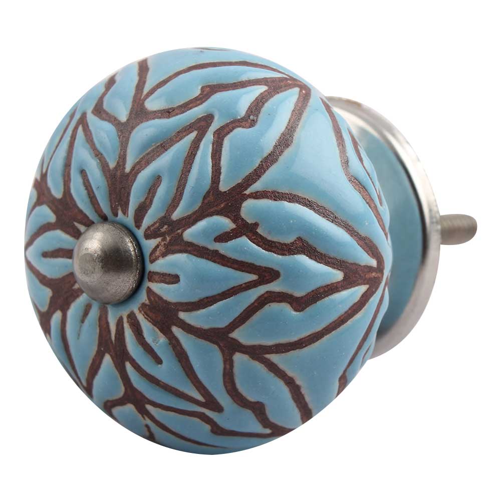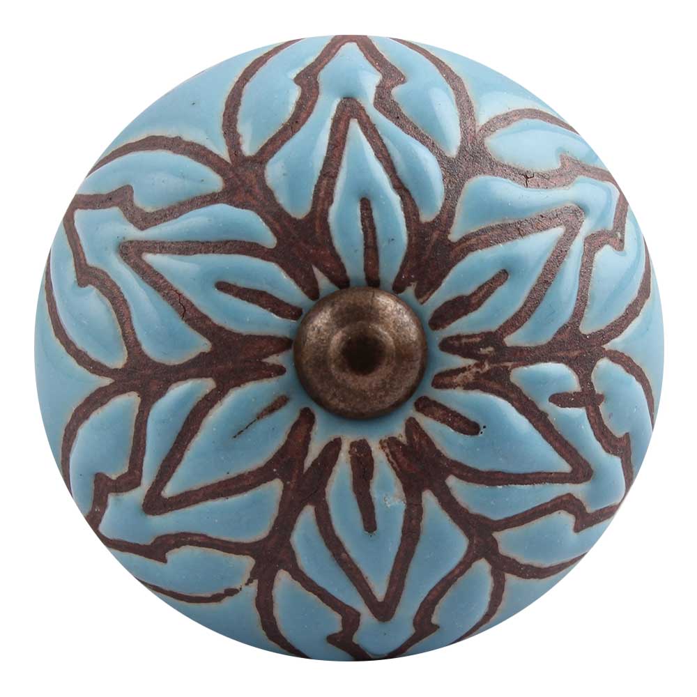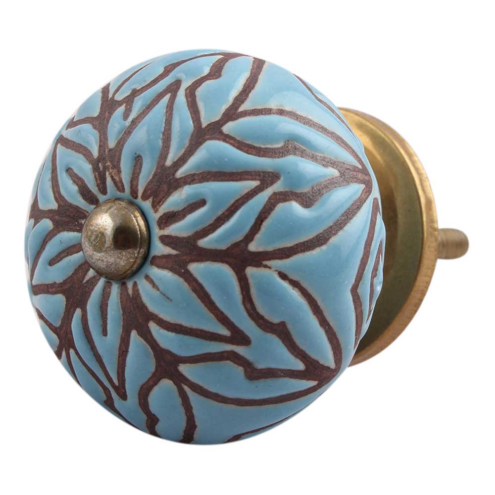 Turquoise Amarylis Floral Etched Ceramic Drawer Knob