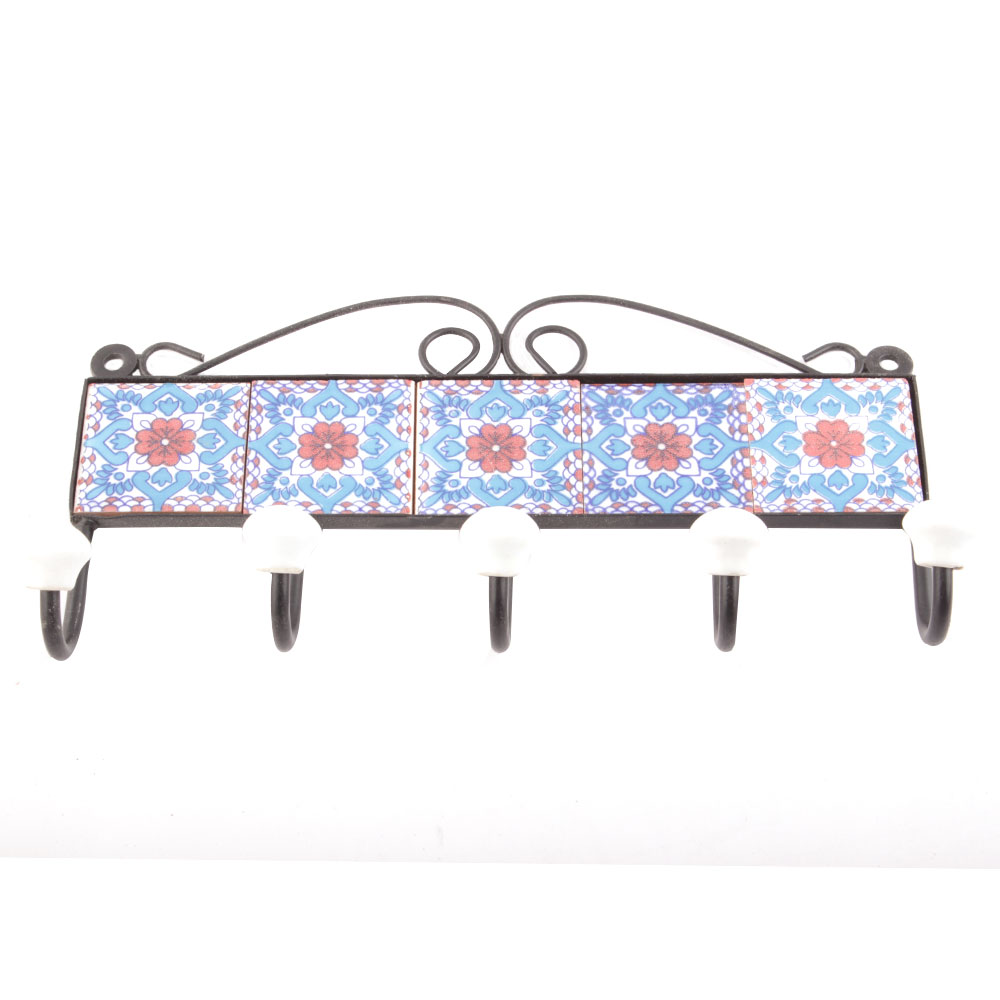 Turquoise And Red Floral Tiles Hooks