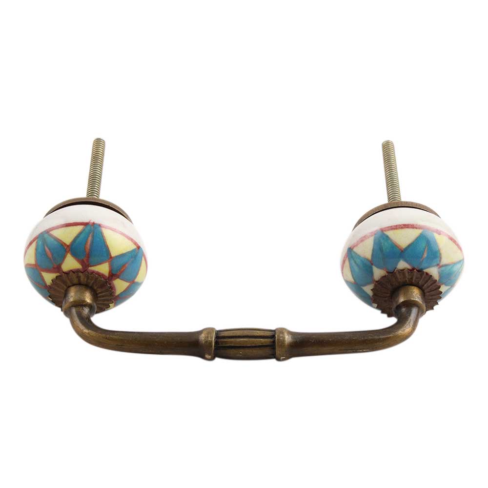 Turquoise and Yellow Ceramic Bridge Handle. Ideal for Drawer, Dresser, Cabinet, Wardrobe, Cupboard and Almirah.