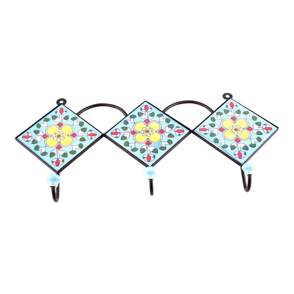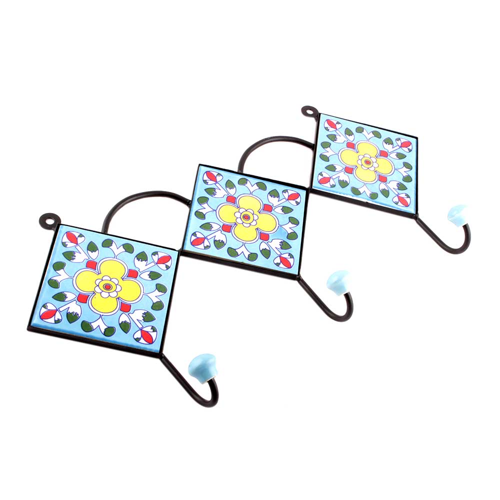 Turquoise And Yellow Ceramic Floral Tiles Hooks