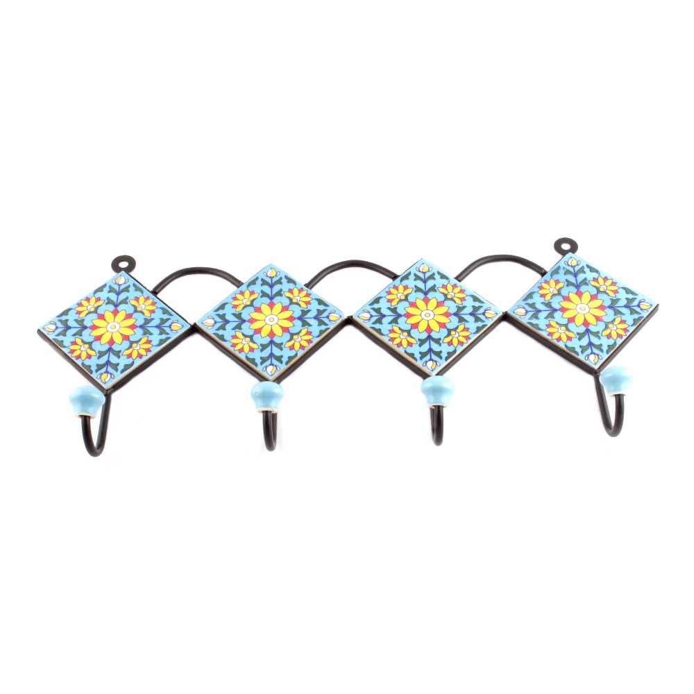 Turquoise And Yellow Ceramic Sunflower Tiles Hooks