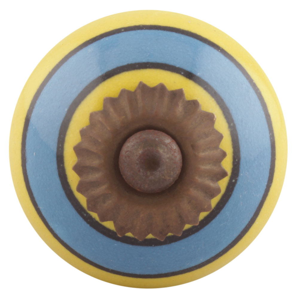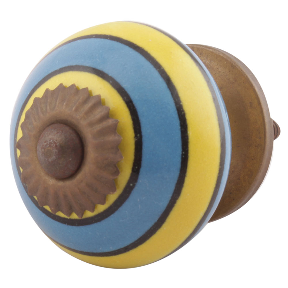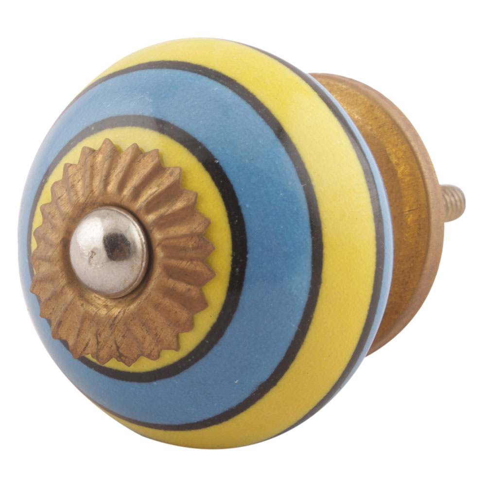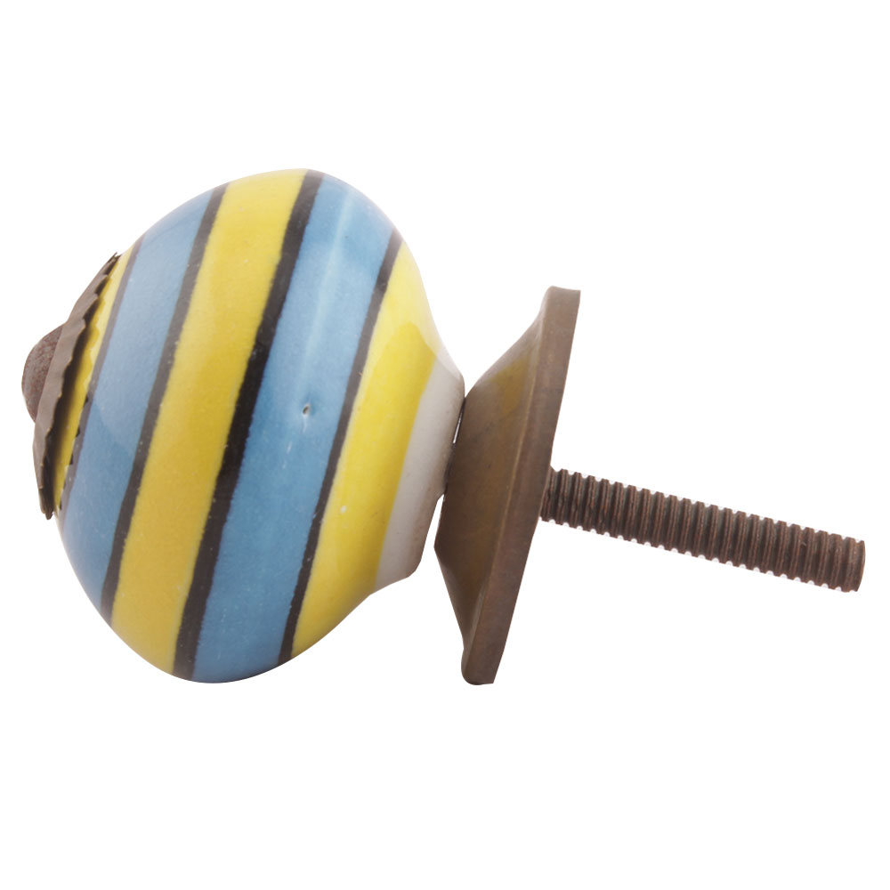 Turquoise And Yellow Striped Ceramic Dresser Knobs