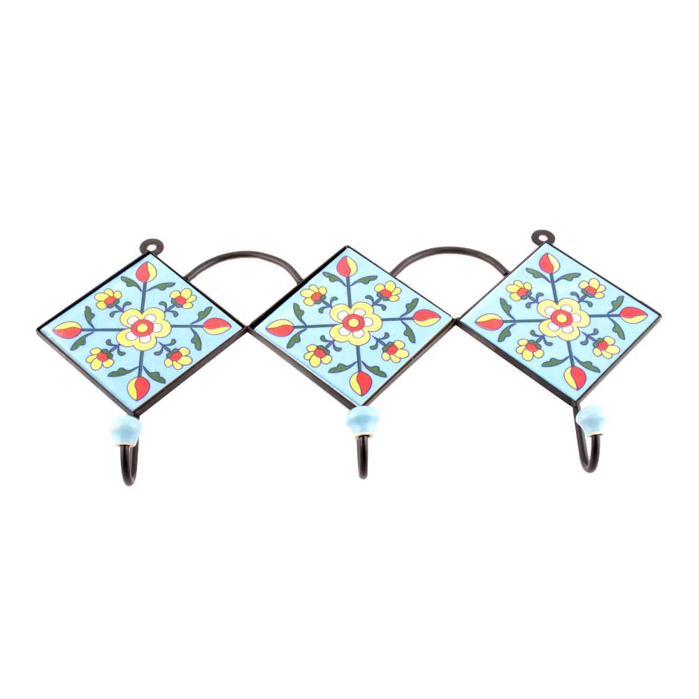 Turquoise And Yellow Tiny Flower Ceramic Tiles Hooks