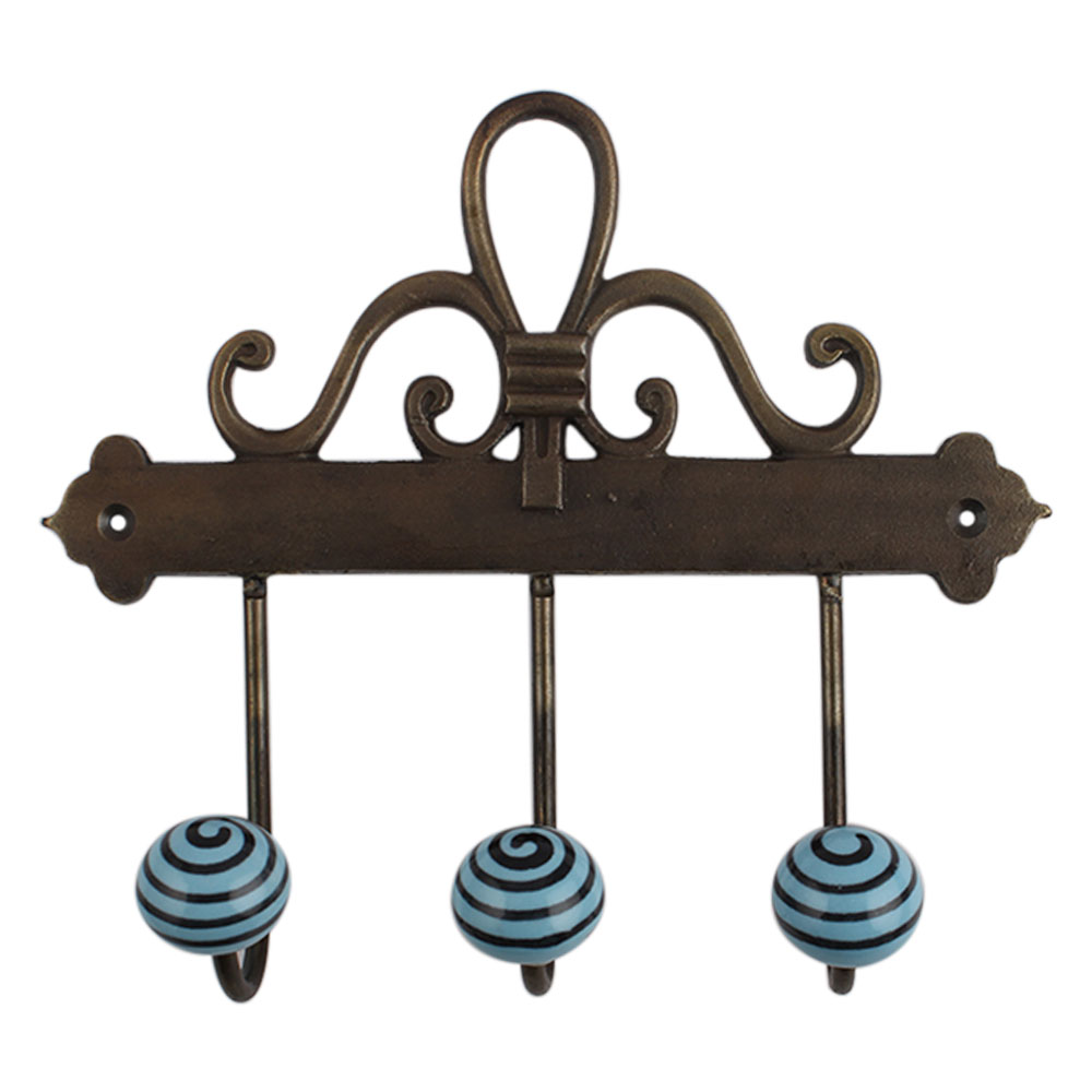 Turquoise Black Strip Ceramic Iron Hook. A Perfect Complement to the Soft Tone of the Wood are these White Traditional Hat & Coat Hook Made of Genuine Porcelain and Brass. It can be use to Hang Jewellery, Leashes, Towels, Scarves, Light Weight Sweaters, Caps Etc.