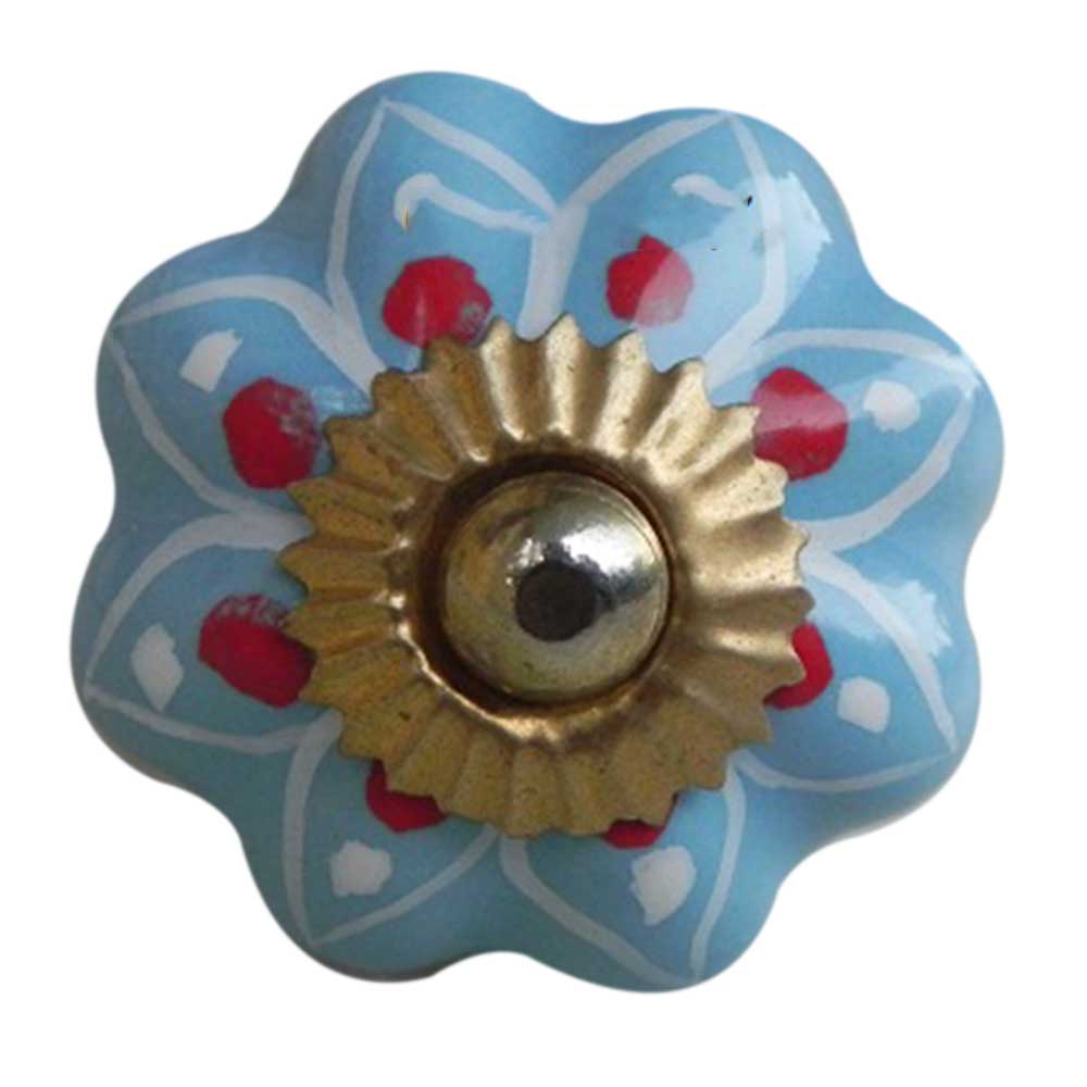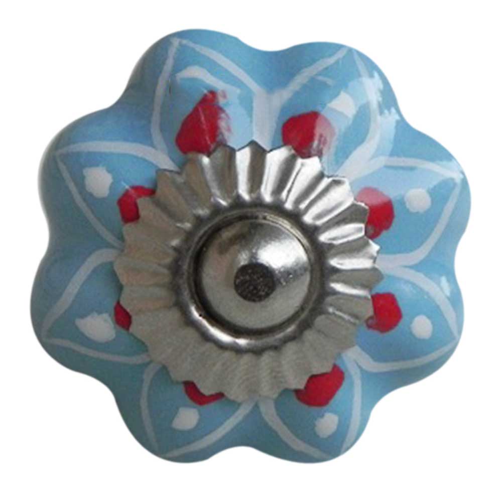 Turquoise Blue Red Polka Drawer Knob