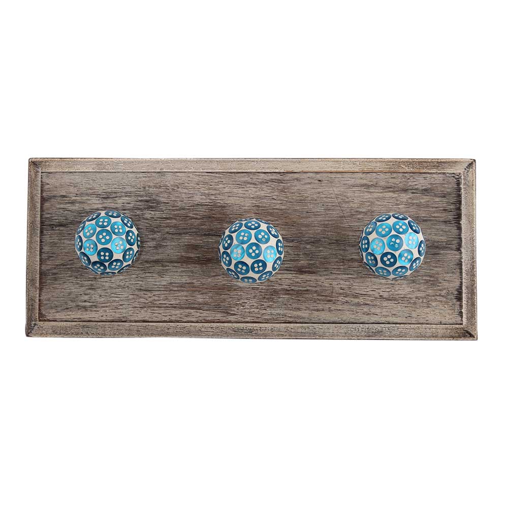 Turquoise Button Wooden Hook. A Perfect Complement to the Soft Tone of the Wood are these White Traditional Hat Coat Hook Made of Genuine Porcelain and Brass. It can be use to Hang Jewellery, Leashes, Towels, Scarves, Light Weight Sweaters, Caps Etc.