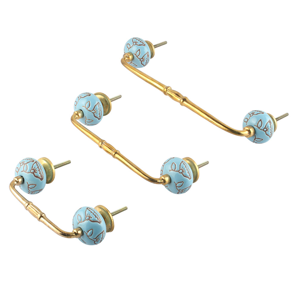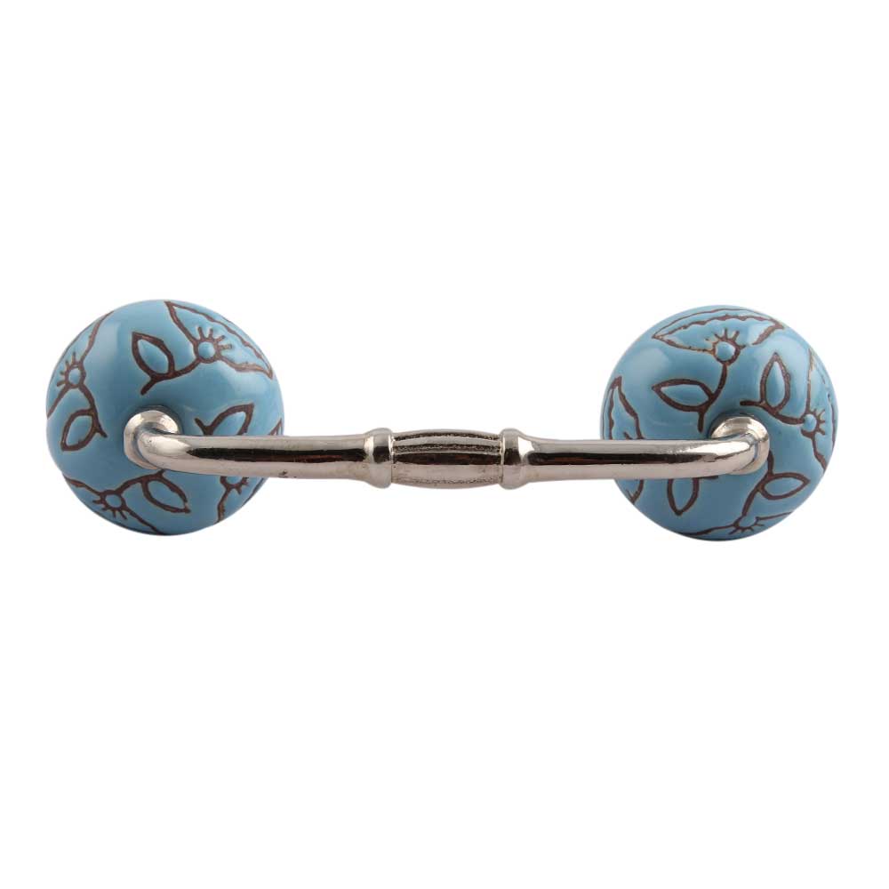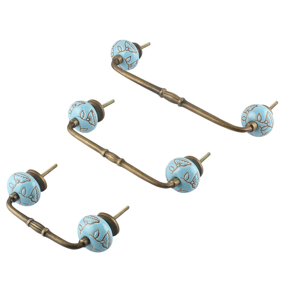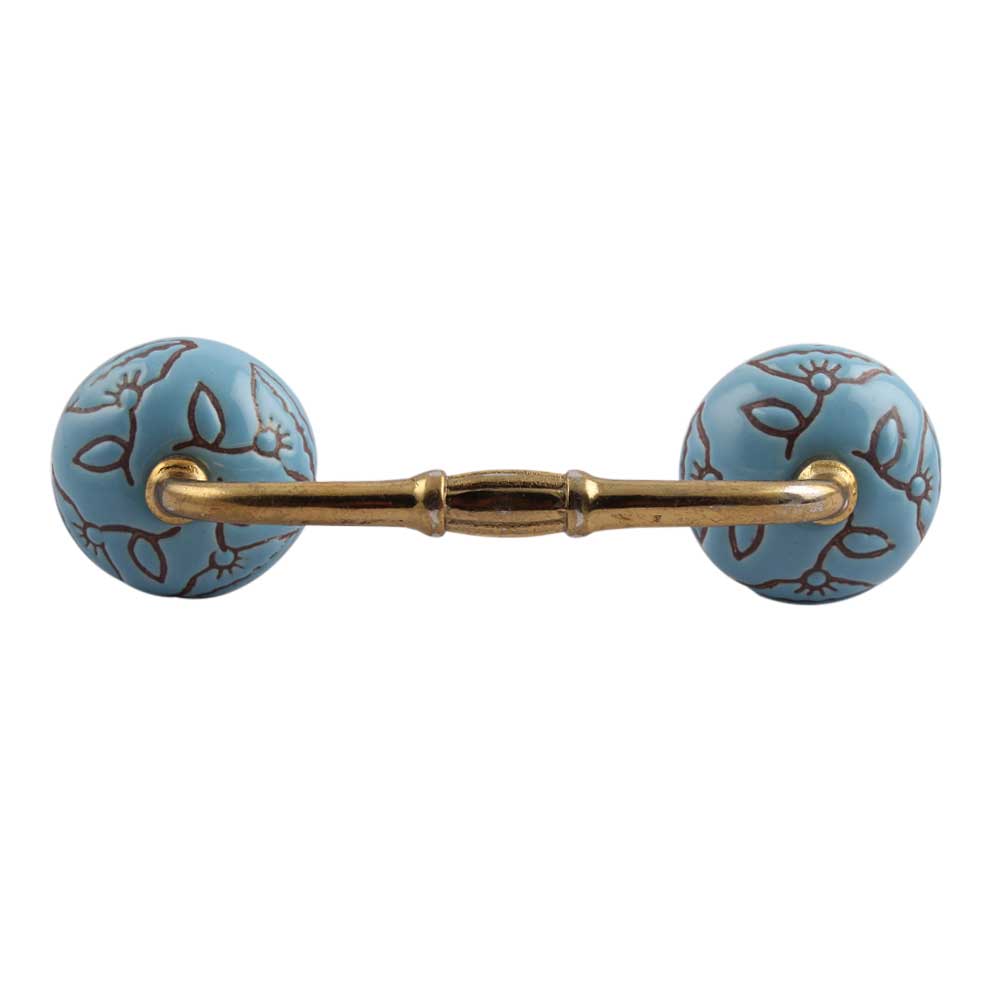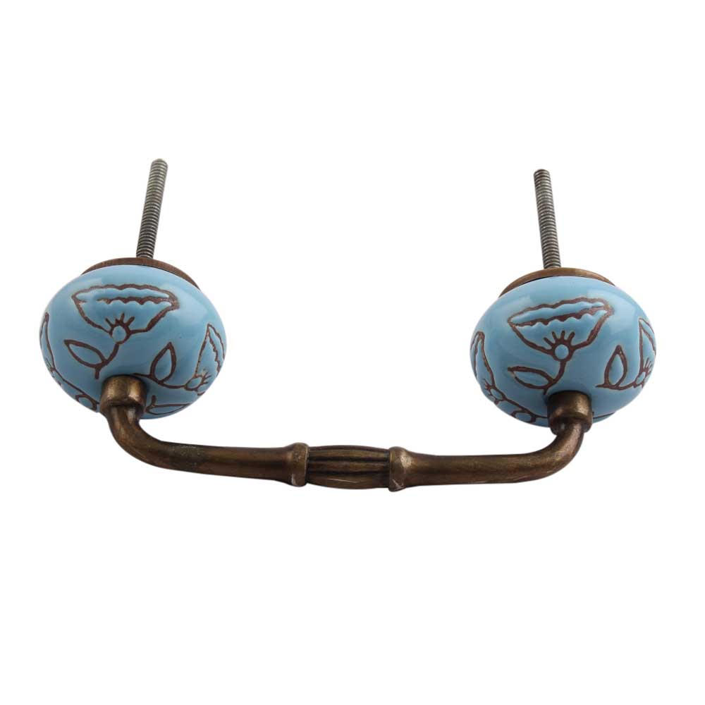 Turquoise Calla Lily Brown Etched Ceramic Bridge Handle. Ideal for Drawer, Dresser, Cabinet, Wardrobe, Cupboard and Almirah.
