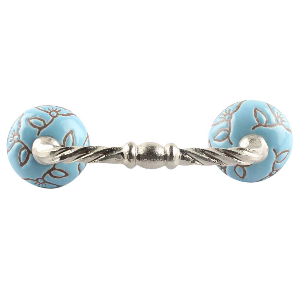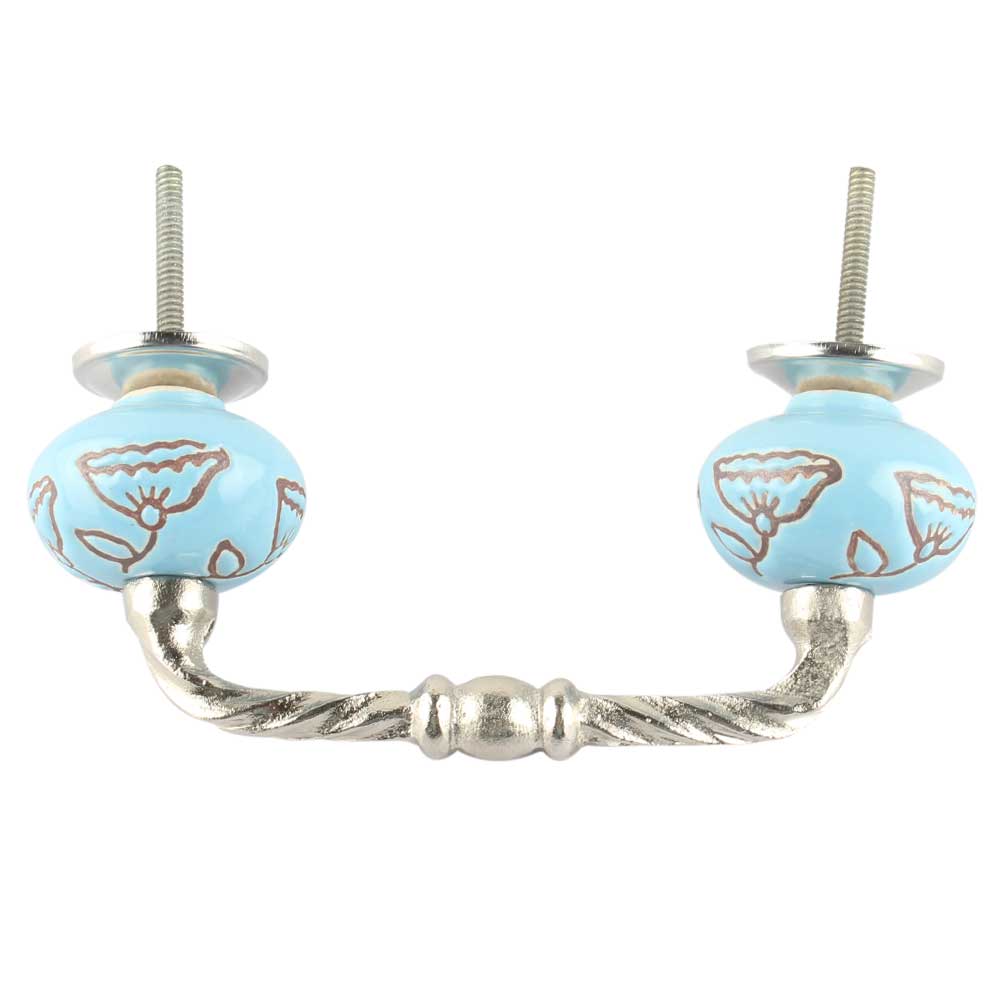 Turquoise Calla Lily Brown Etched Ceramic Cut Bridge Handle. Ideal for Drawer, Dresser, Cabinet, Wardrobe, Cupboard and Almirah etc.