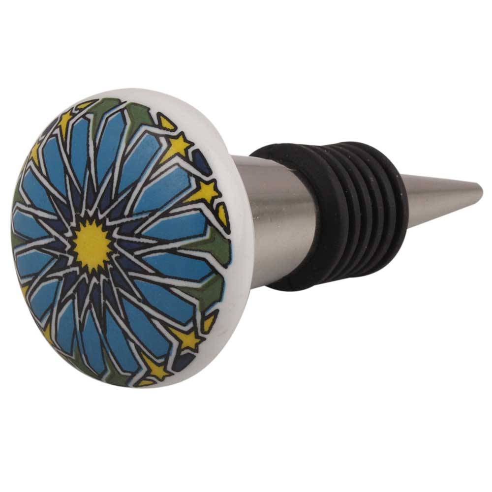 Turquoise Ceramic Flat Wine Stopper.zinc alloy wine bottle stopper with attractive Jute Bag Packaging.