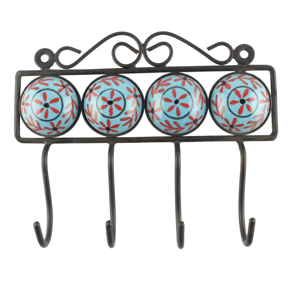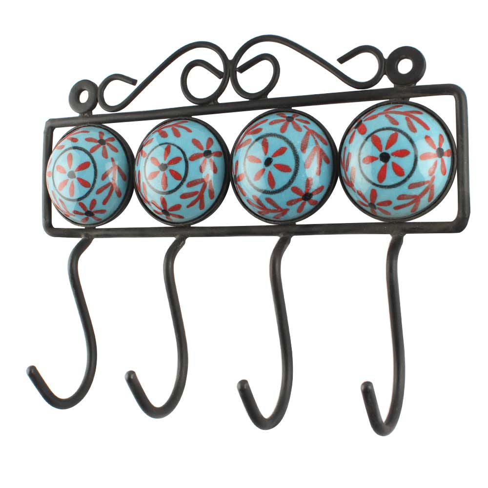 Turquoise Ceramic Floral Tiles Hooks. When Put on Wall or Cabinet It is An Art in Itself. The Metal Part of this Hook is Black Powder Coated.