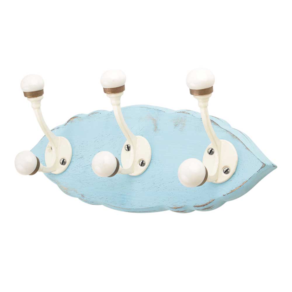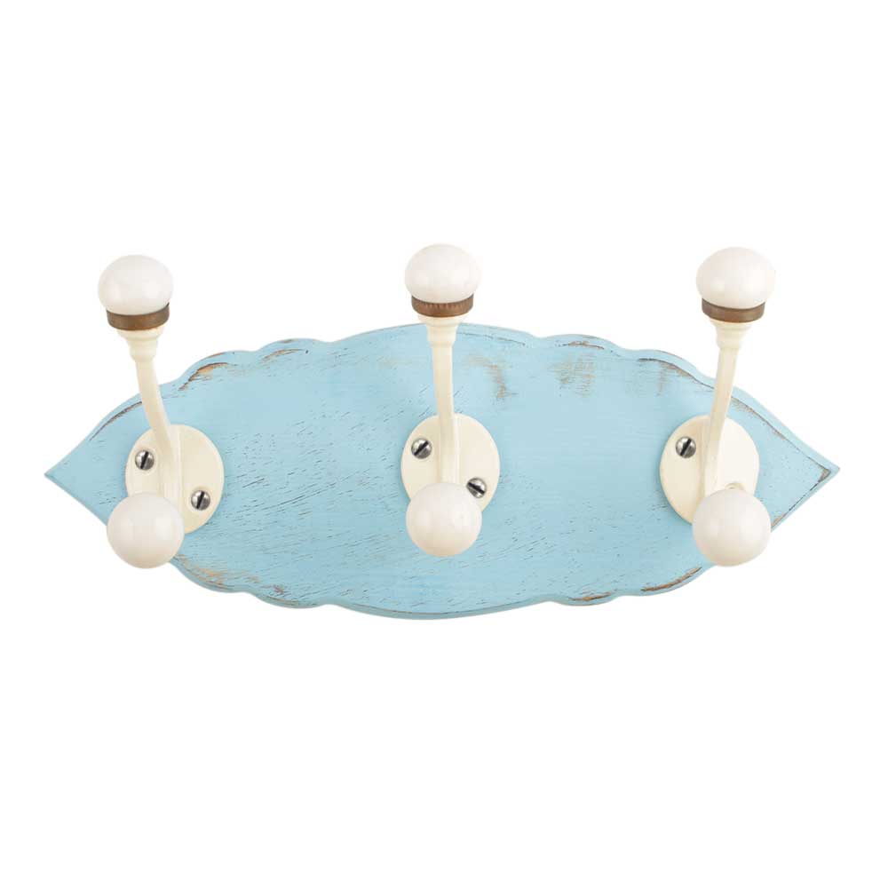 Turquoise Cream Double Loop Ceramic Iron Wooden Hooks. A Perfect Complement to the Soft Tone of the Wood are these White Traditional Hat & Coat Hook Made of Genuine Porcelain and Brass. It can be use to Hang Jewellery, Leashes, Towels, Scarves, Light Weight Sweaters, Caps Etc.