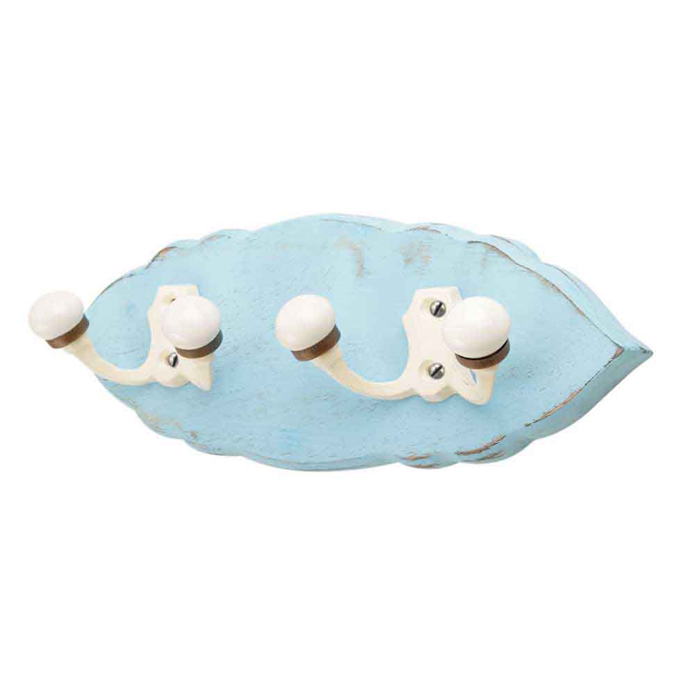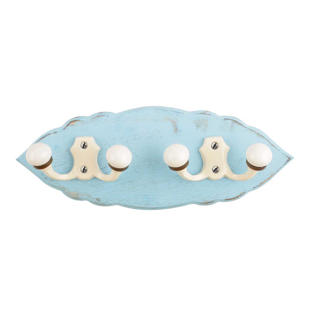Turquoise Cream Double Loop Ceramic Iron Wooden Hooks. A Perfect Complement to the Soft Tone of the Wood are these White Traditional Hat & Coat Hook Made of Genuine Porcelain and Brass. It can be use to Hang Jewellery, Leashes, Towels, Scarves, Light Weight Sweaters, Caps Etc.
