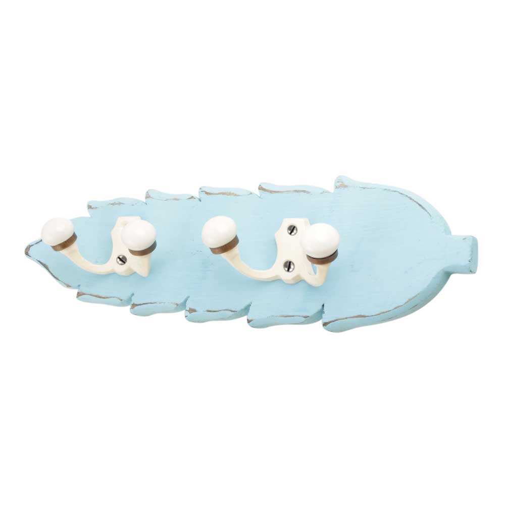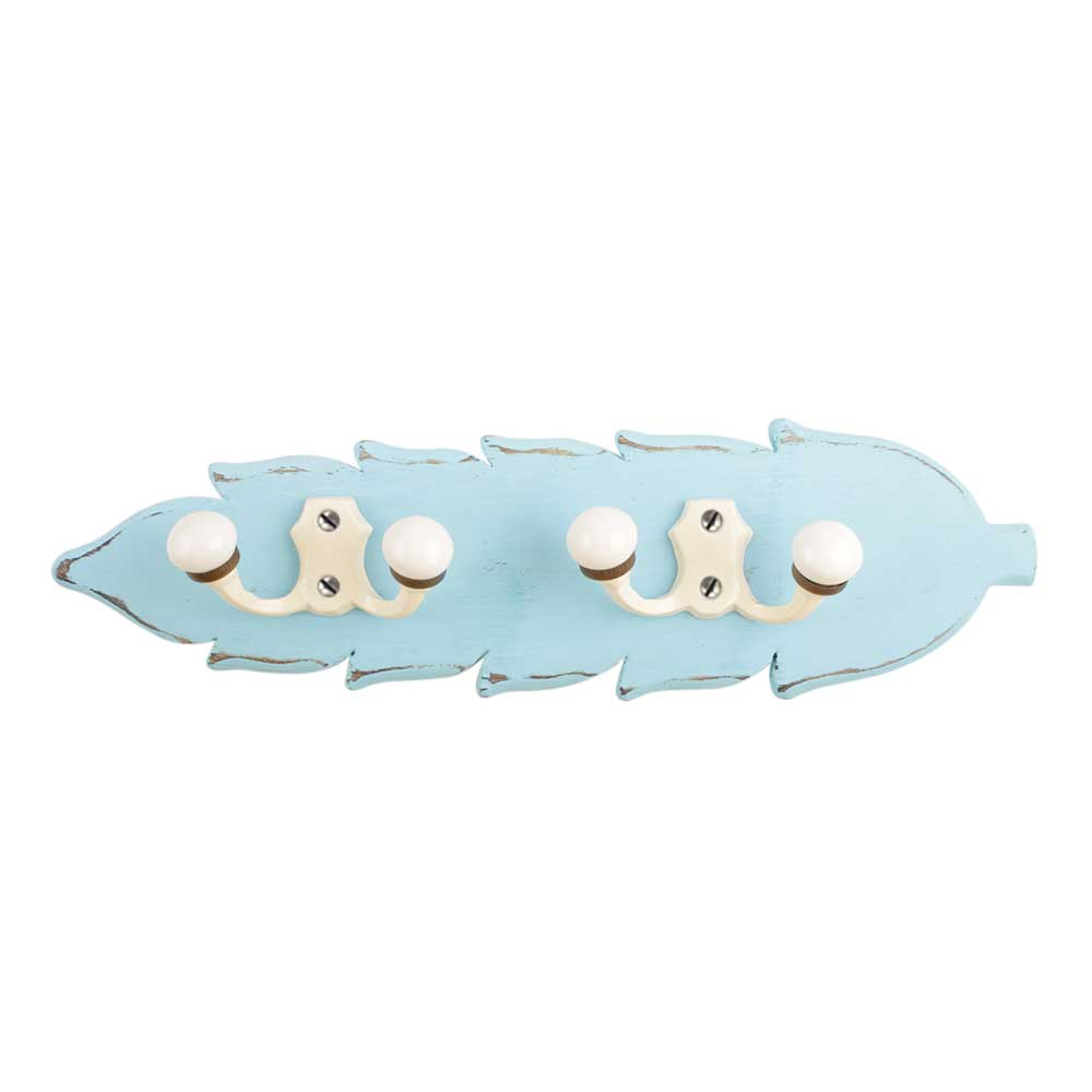 Turquoise Cream Double Loop Ceramic Iron Wooden Hooks. A Perfect Complement to the Soft Tone of the Wood are these White Traditional Hat & Coat Hook Made of Genuine Porcelain and Brass. It can be use to Hang Jewellery, Leashes, Towels, Scarves, Light Weight Sweaters, Caps Etc.